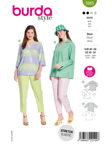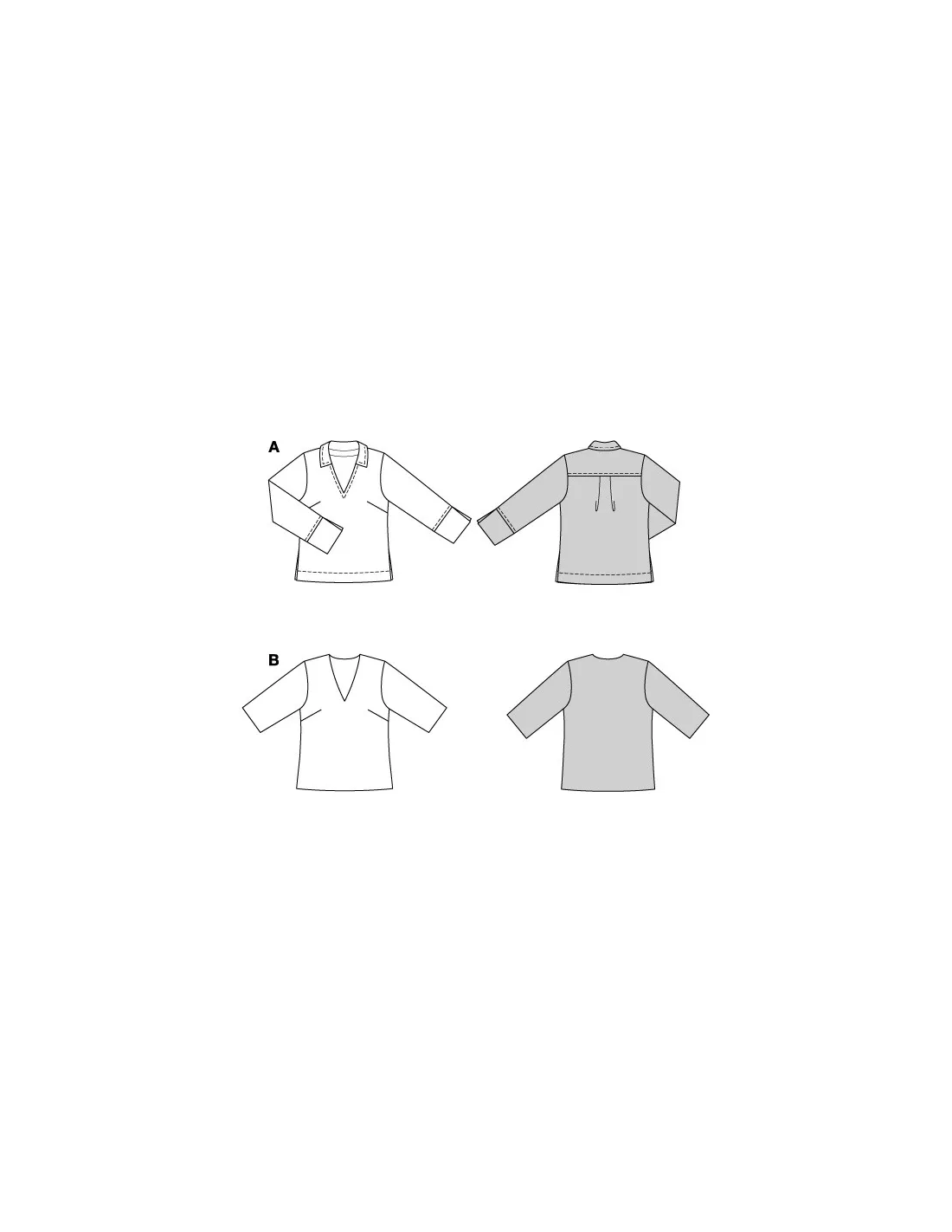 Des basiques modernes avec des accents particuliers : la première blouse séduit par de larges poignets au lieu des classiques et un col en V remplaçant la patte de boutonnage. Le second haut allie praticité quotidienne et glamour – un décolleté en V profond, des manches 3/4 et une coupe facile rendent les sequins adaptés au quotidien.