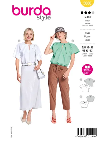 Plissé avec finesse et raffinement : la première blouse obtient son élégante allure « boléro plus top » grâce à des manches montées habilement froncées au niveau de l’encolure. Le second modèle rappelle l’origami avec ses manches plissées et sa patte d’encolure smockée – un élastique à l’ourlet structure parfaitement la silhouette.
