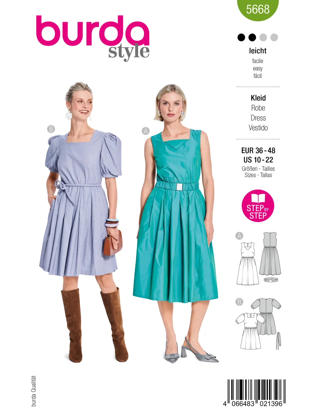 Deux robes, deux styles – toutes deux avec un effet « wow » : le premier modèle mise sur des manches ballon, un décolleté carré et un nœud pour des vibes rétro romantiques, et peut être facilement rallongé. Le second réinterprète le classique des années 50 avec un tissu technique sportif, une jupe ample et une large ceinture à boucle métallique pour une touche moderne inspirée de Prada. Un duo qui montre à quel point l’élégance féminine peut être polyvalente.