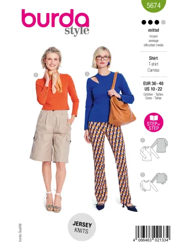 T-shirts minimalistes avec détails raffinés : la première version se distingue par une fente asymétrique le long de l’épaule et peut se porter comme un T-shirt avec des manches raccourcies. La seconde présente des pressions coordonnées sur les fentes de manches et une longueur courte à la mode – idéale avec des pantalons ou jupes taille haute, mais le modèle peut également être allongé si nécessaire. Des styles polyvalents pour des tenues décontractées ou élégantes.
