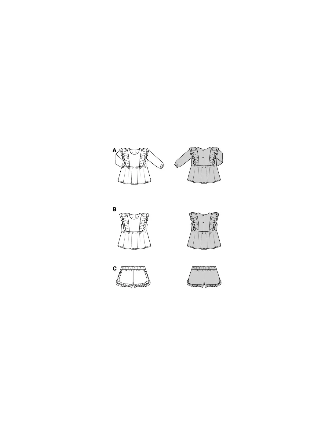 Looks d’été charmants pour les petites fashionistas : la tunique est confortable, avec des volants délicats et un imprimé lavande subtil – en uni, le haut sans manches est particulièrement mis en valeur. À assortir avec un short crème-vanille à volants et taille élastique, en mousseline douce pour un confort optimal. Ensemble, ils forment un adorable ensemble deux-pièces qui accompagne les enfants avec style et légèreté tout l’été.