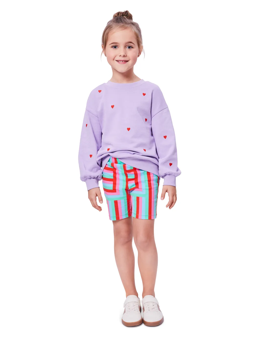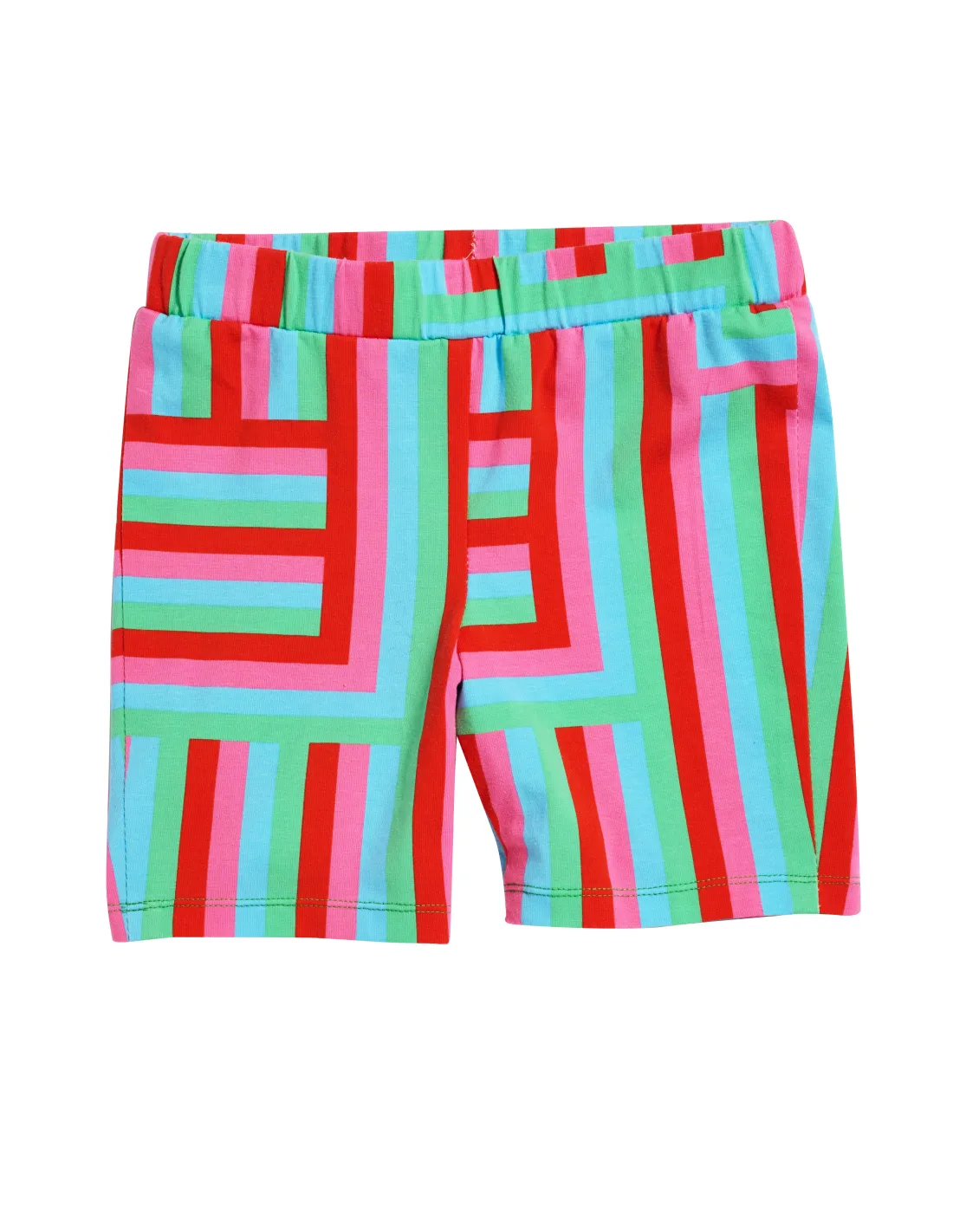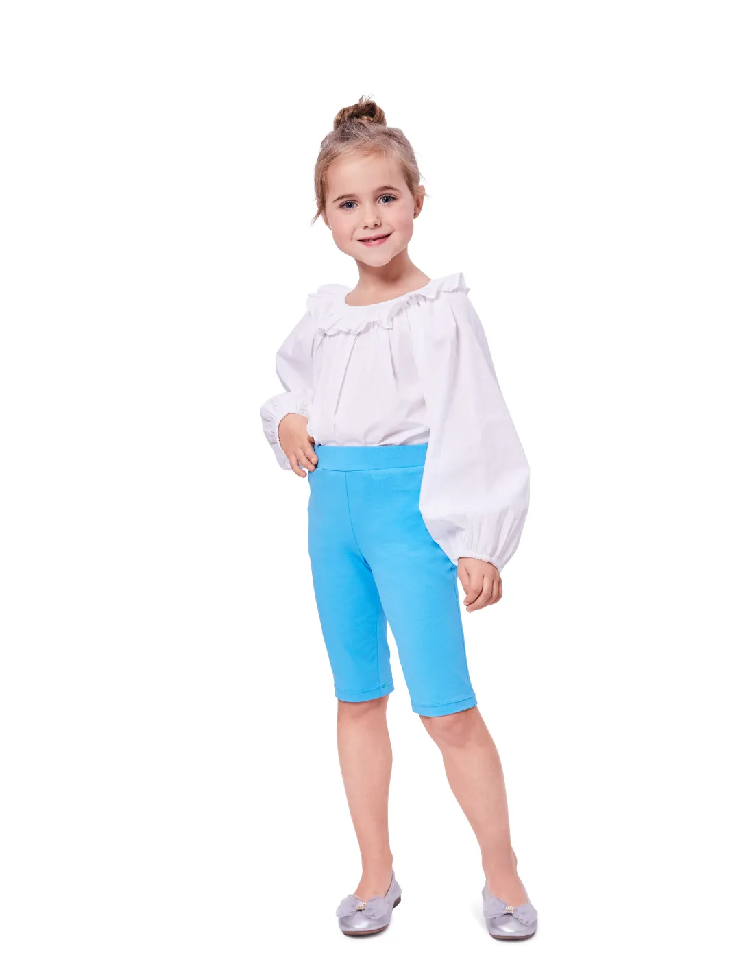 Variété de pantalons colorés pour enfants : le premier pantalon vert et léger, avec jambes légèrement évasées et motifs colorés, met immédiatement de bonne humeur et est très confortable. Le deuxième pantalon, longueur genou avec large taille élastique, apporte une touche chic grâce à sa coupe sport-chic – associé à un chemisier délicat, le look de jeu devient raffiné. La troisième variante, des leggings colorés en forme de short, se marie parfaitement avec un haut uni et des baskets simples – idéal pour les aventures estivales.