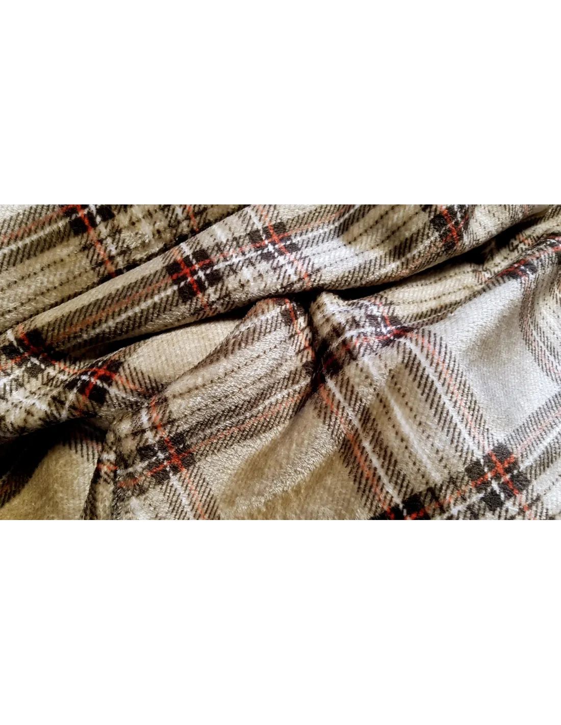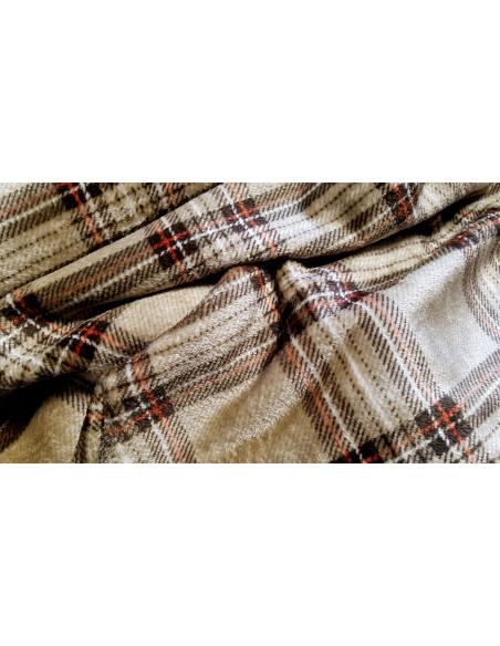 Polaire épaisse doudou à carreaux taupe. Très douce et agréable au toucher.