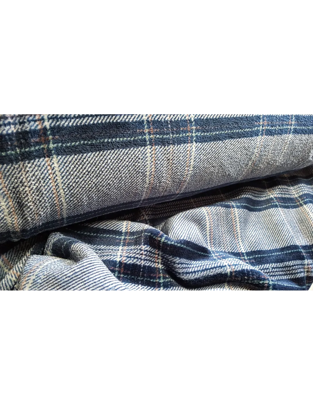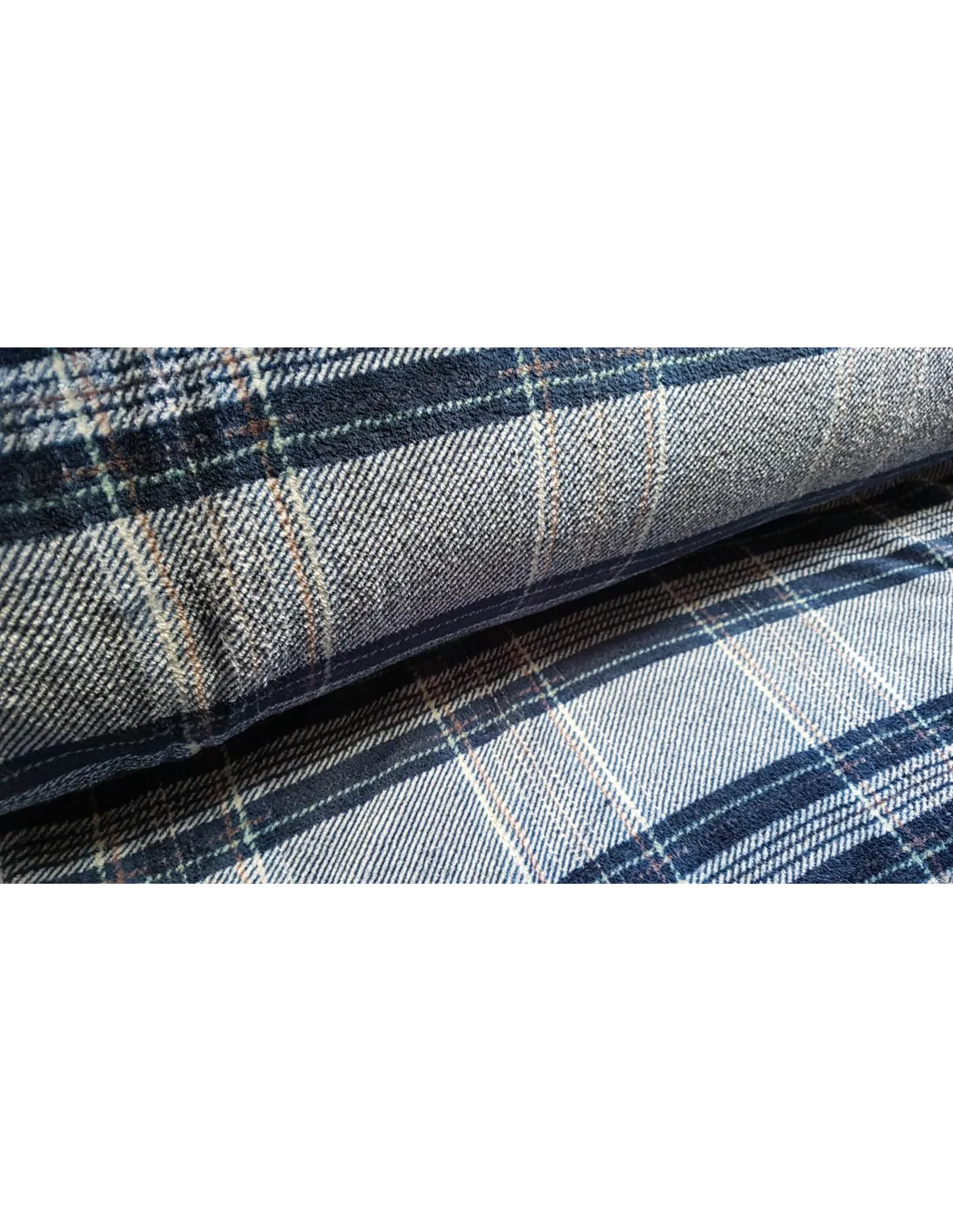 Polaire épaisse doudou à carreaux bleu avec de fines rayures roses. Très douce et agréable au toucher.