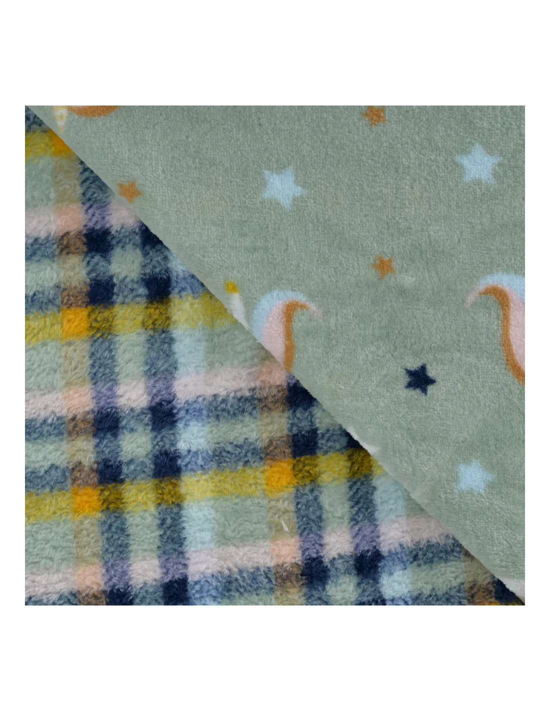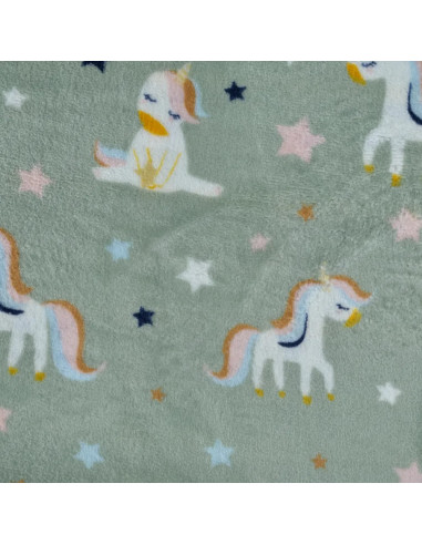 Polaire doudou imprimée double face, licornes + carreaux