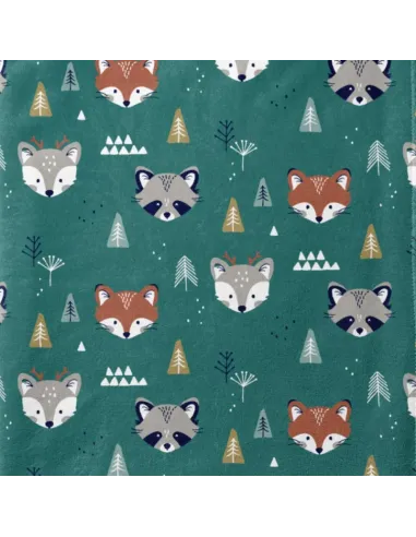 Préparez-vous à plonger dans l'univers magique des bois avec notre Polaire Doudou imprimée "Forêt Enchantée" ! Ce tissu est un incontournable pour les amoureux de la nature et du confort. Son motif adorable de renards, ratons-laveurs et faons dans des tons de vert canard profond et de rouille/terracotta est à la fois tendance et réconfortant.