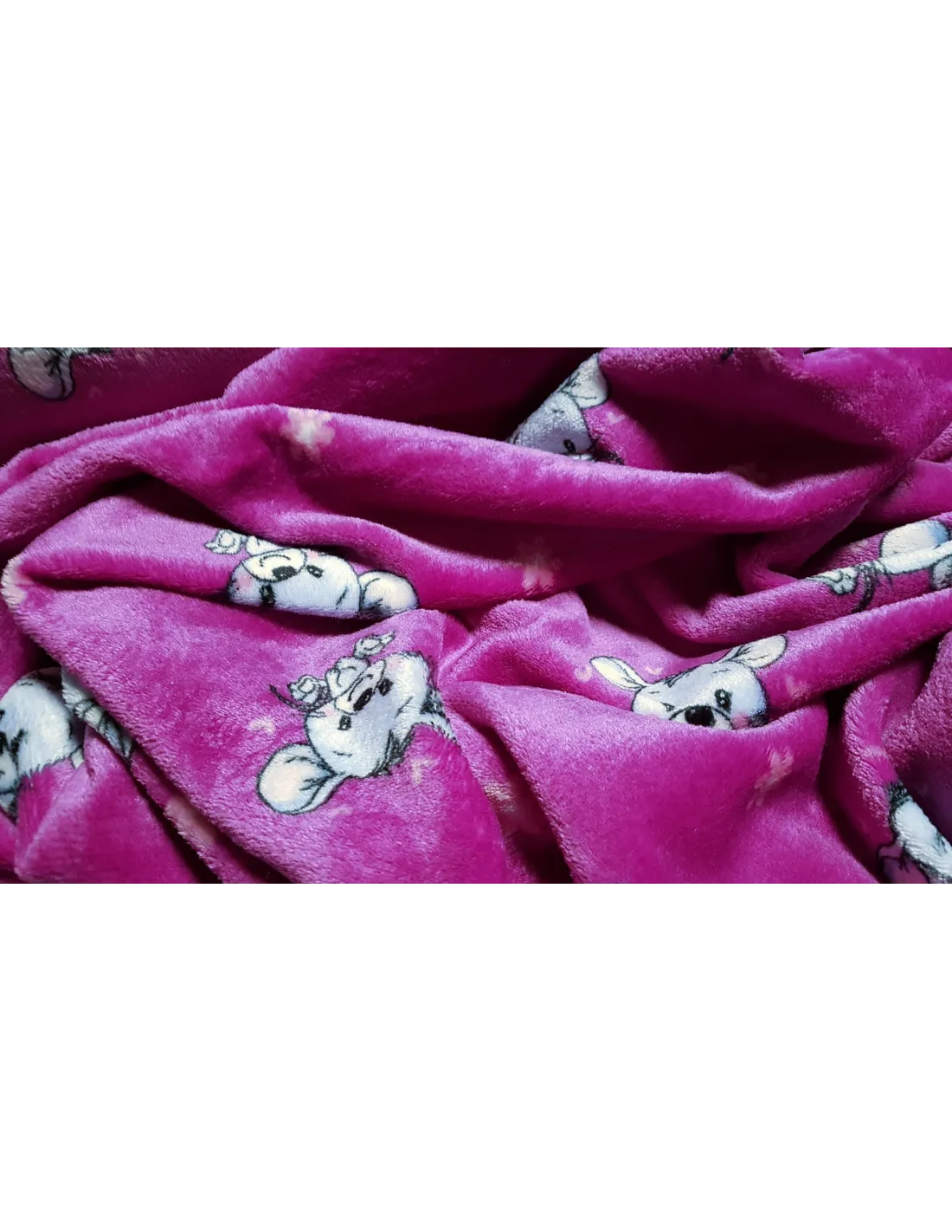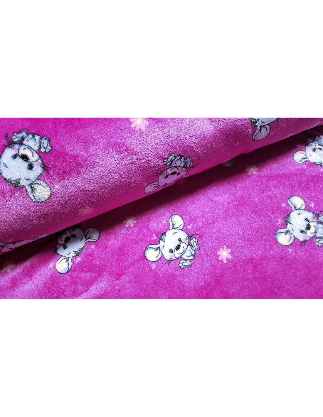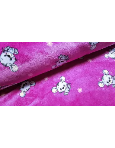 Tissu polaire doudou à imprimés souris sur fond rose fuchsia