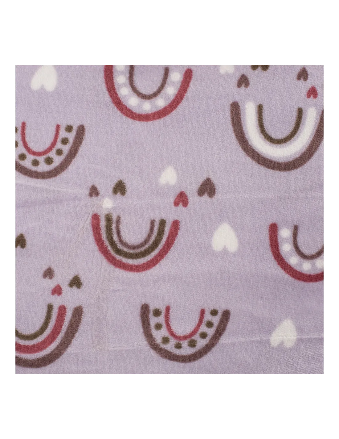 Côté Envers (Motif Secondaire) : L'envers est uni dans la même teinte mauve, mais révèle des motifs de cœurs qui complètent parfaitement le thème de l'arc-en-ciel.