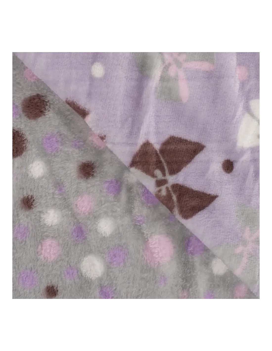 Polaire épaisse doudou réversible aux imprimés papillons sur fond rose avec un envers ronds. Très douce et agréable au toucher.