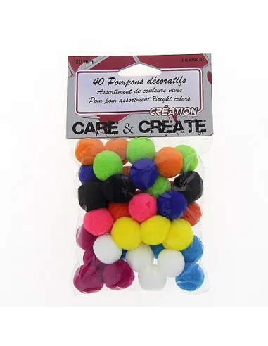 40 pompons décoratifs multicolores, 2cm de diamètre environ