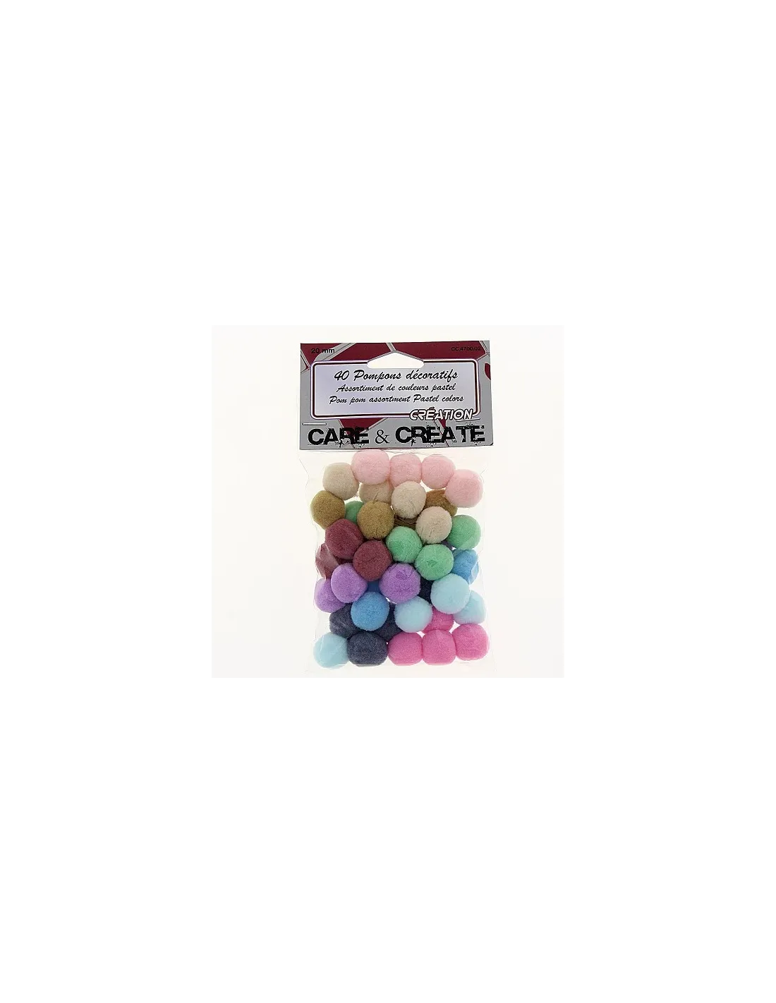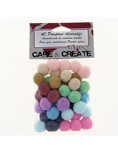 Pompon décoratifs, 2cm, couleurs pastel