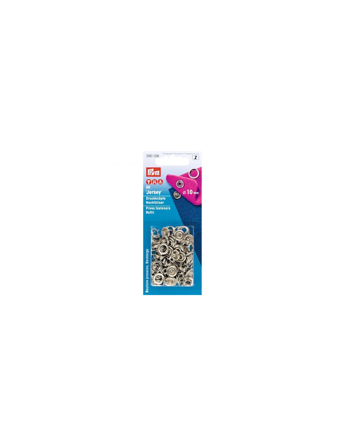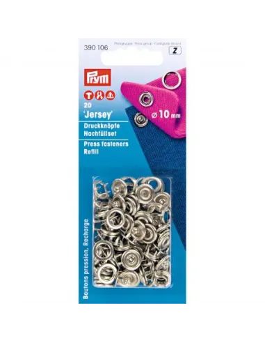 Les boutons pression « Jersey » de Prym sont caractérisés par leur force de fermeture souple à moyenne. Ils sont conçus spécialement pour les matériaux fins et élastiques tels que les vêtements bébé ou enfant. L’avantage de ce bouton pression est qu’il ne nécessite pas de percer un trou pour être posé : les boutons pression à griffes intégrés repoussent le tissu et permettent ainsi de ne pas l’abîmer. Le lavage, l’essorage, le nettoyage, le repassage à fer ou à rouleau ne posent aucun problème aux boutons pression inoxydables « Jersey » de chez Prym. Les boutons pression sont également disponibles en différents coloris et avec différents dessins. Les boutons pression de 18 mm ne peuvent être posés qu’avec l’outil fourni. Les boutons pression de 10 et 12 mm peuvent également être posés avec la pince VARIO à percer et à river ou le trépied Prym.