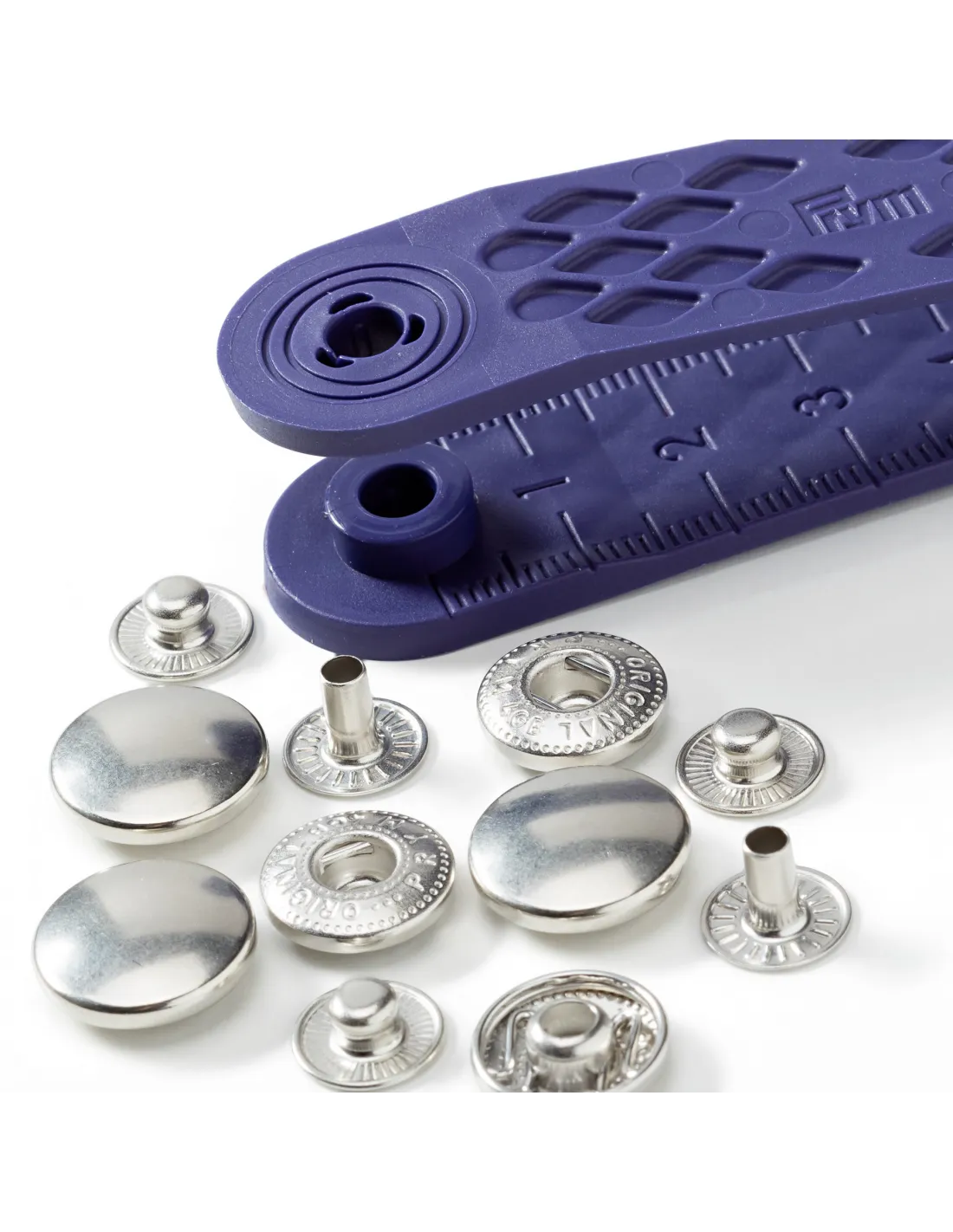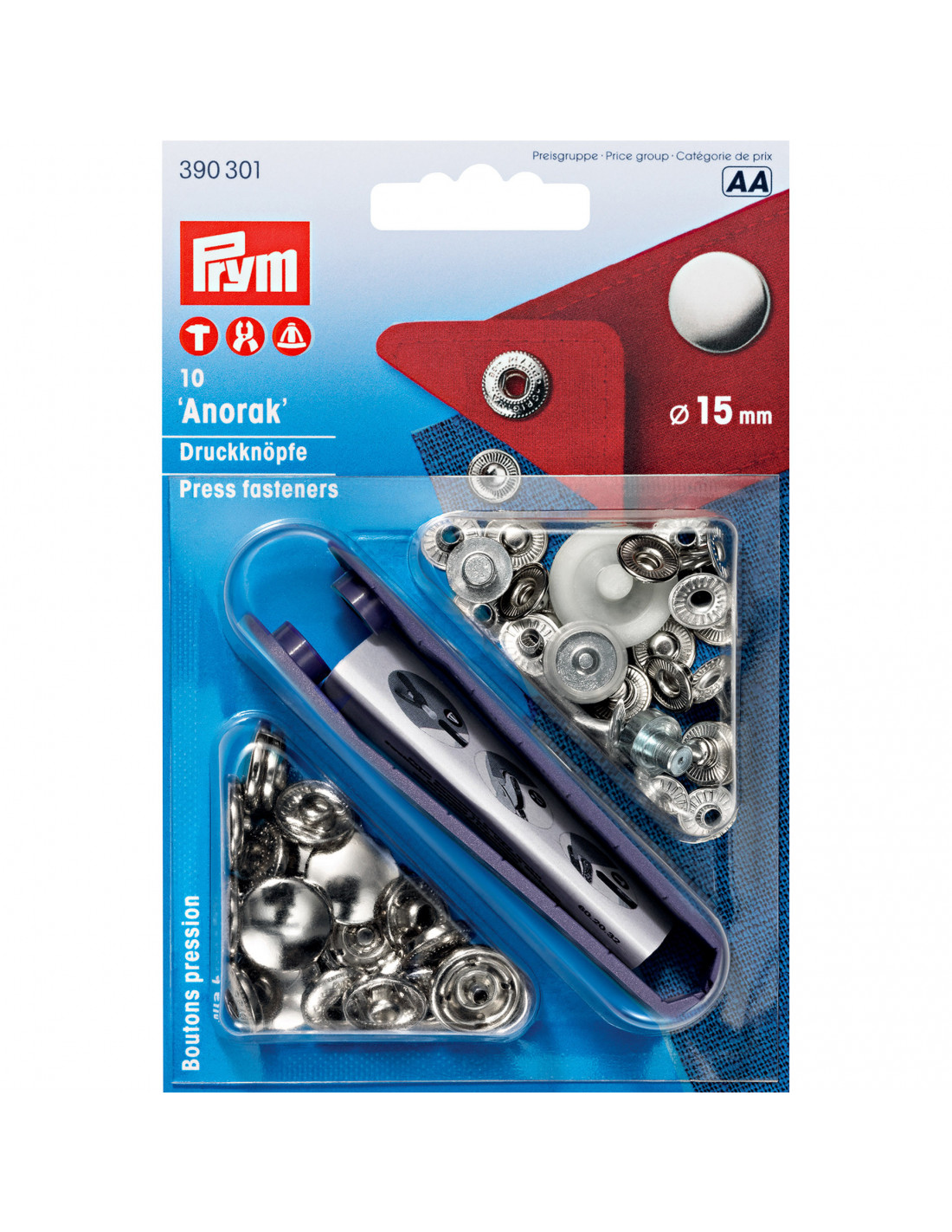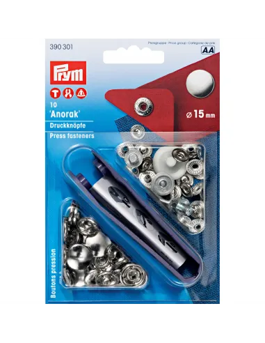 La force de fermeture moyenne des boutons pression sans couture « Anorak » fait d’eux des boutons parfaits pour les blousons, les anoraks, les robes, les jupes et les textiles de cuir fin. Leur particularité est d’avoir un fil à ressort en bronze (ressort « S ») garantissant une ouverture et une fermeture en douceur. Les boutons pression sont en laiton inoxydable et disponibles avec des revêtements aux couleurs variées telles que l’argent, l’or, le laiton antique, le cuivre antique, le fer antique ou le brun. La calotte laquée en blanc ou noir constitue une autre variante attrayante. Les outils et les instructions sont fournis dans le paquet : vous pouvez ainsi commencer immédiatement ! Les boutons pression Anorak peuvent aussi être posés avec la pince VARIO à percer et à river ou le trépied.