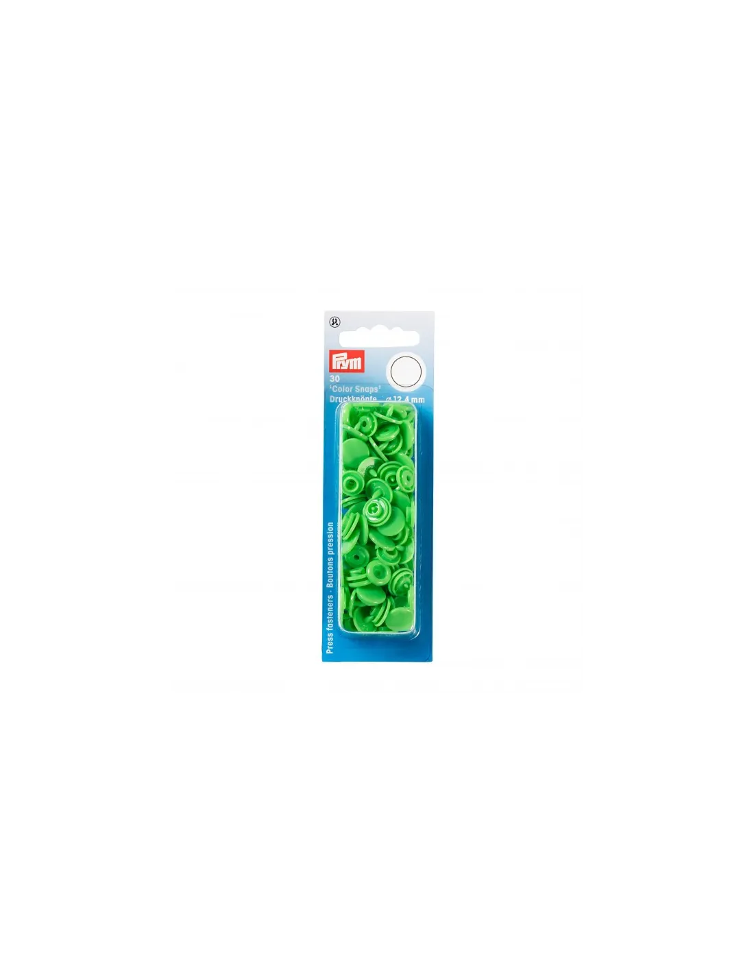 Les « Color Snaps » de la gamme « Prym Love » ont depuis longtemps acquis le statut d’incontournables. Ils sont conformes à la norme Oeko-Tex® Standard 100, classe 1 et sont volontiers utilisés pour les vêtements bébé et enfant du fait de leur force de fermeture souple. Il est également possible d’utiliser les boutons pression de couleur pour décorer très facilement blousons, vestes ou draps cousus à la main. Chaque lot contient un assortiment harmonieux de trois couleurs différentes assorties : il y a des assortiments pour absolument tous les goûts ! Les « Color Snaps » en plastique résistants sont lavables à 60 degrés. La pose des « Color Snaps » requiert l’utilisation de la pince VARIO à percer et à river de Prym ainsi que du jeu d’outil « Color Snaps ».