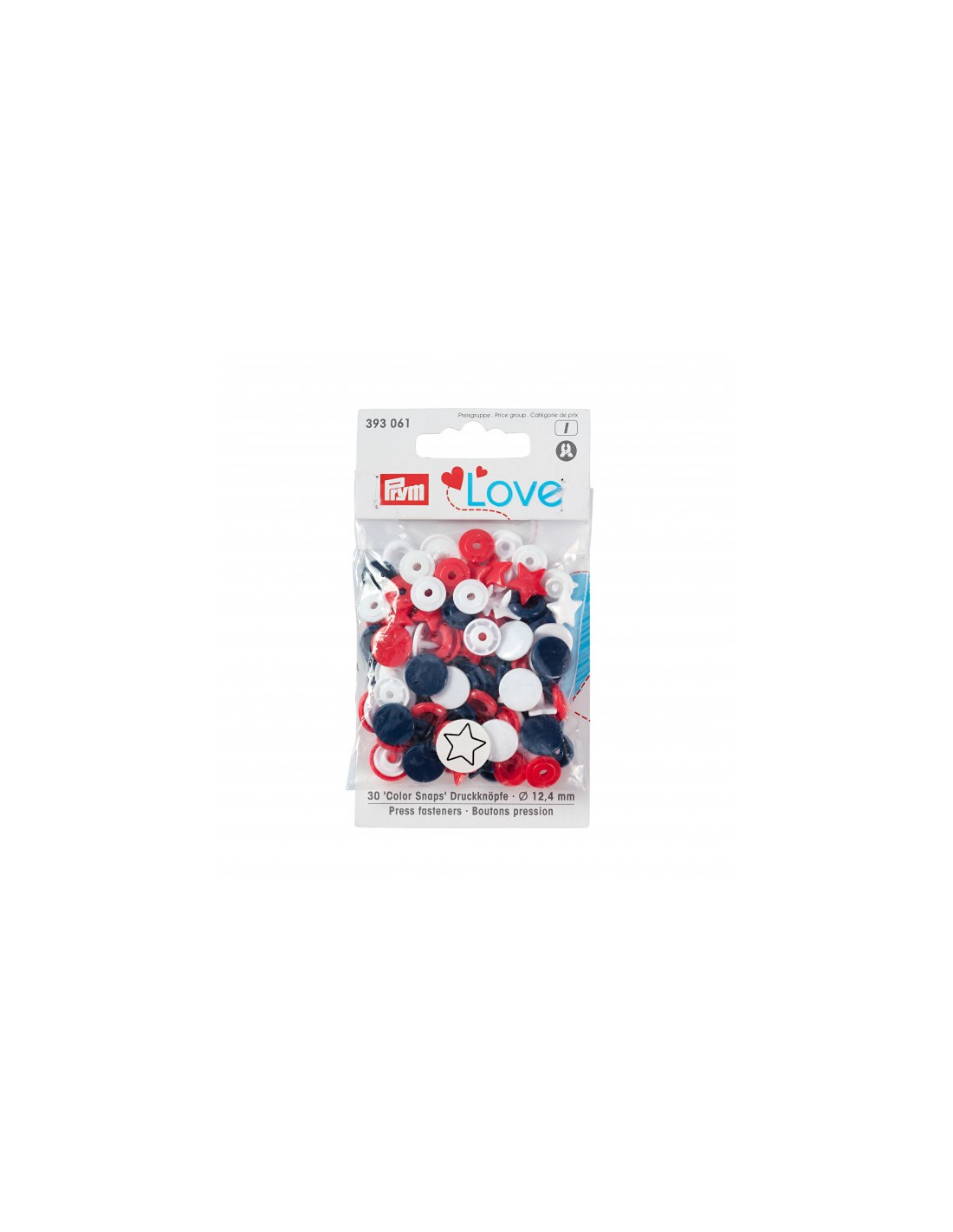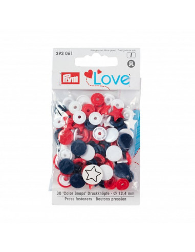 Les « Color Snaps » de la gamme « Prym Love » ont depuis longtemps acquis le statut d’incontournables. Ils sont conformes à la norme Oeko-Tex® Standard 100, classe 1 et sont volontiers utilisés pour les vêtements bébé et enfant du fait de leur force de fermeture souple. Il est également possible d’utiliser les boutons pression de couleur pour décorer très facilement blousons, vestes ou draps cousus à la main. Chaque lot contient un assortiment harmonieux de trois couleurs différentes assorties : il y a des assortiments pour absolument tous les goûts ! Les « Color Snaps » en plastique résistants sont lavables à 60 degrés. La pose des « Color Snaps » requiert l’utilisation de la pince VARIO à percer et à river de Prym ainsi que du jeu d’outil « Color Snaps ».