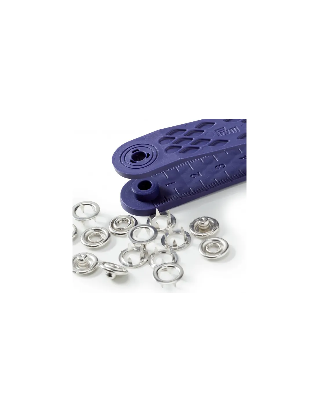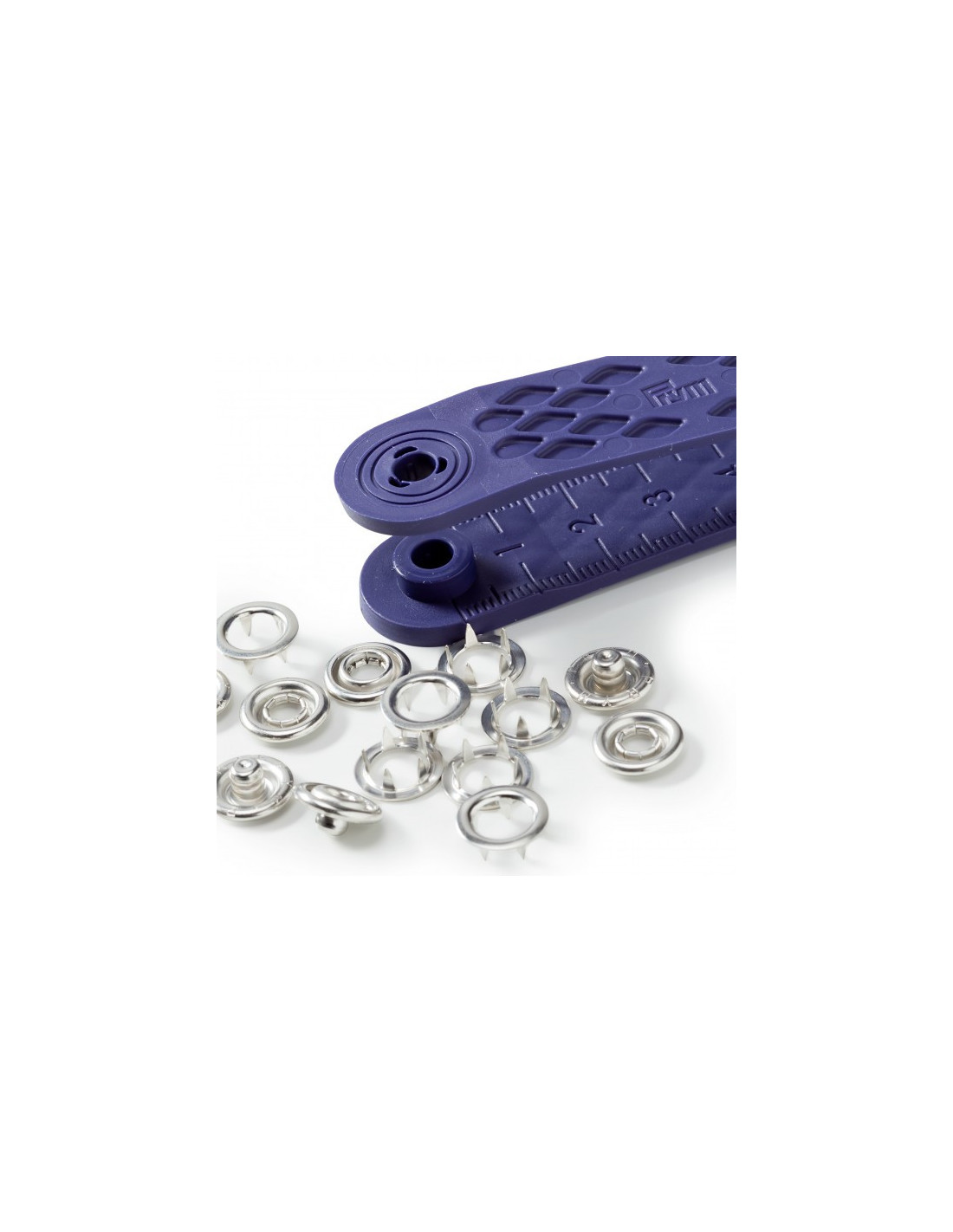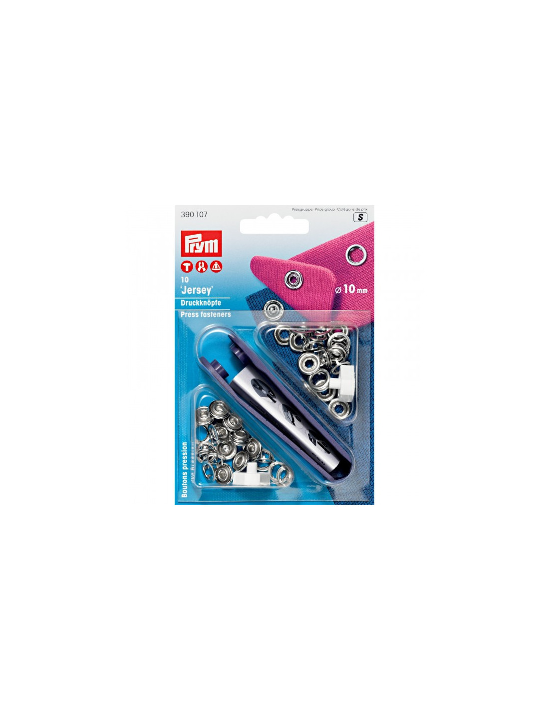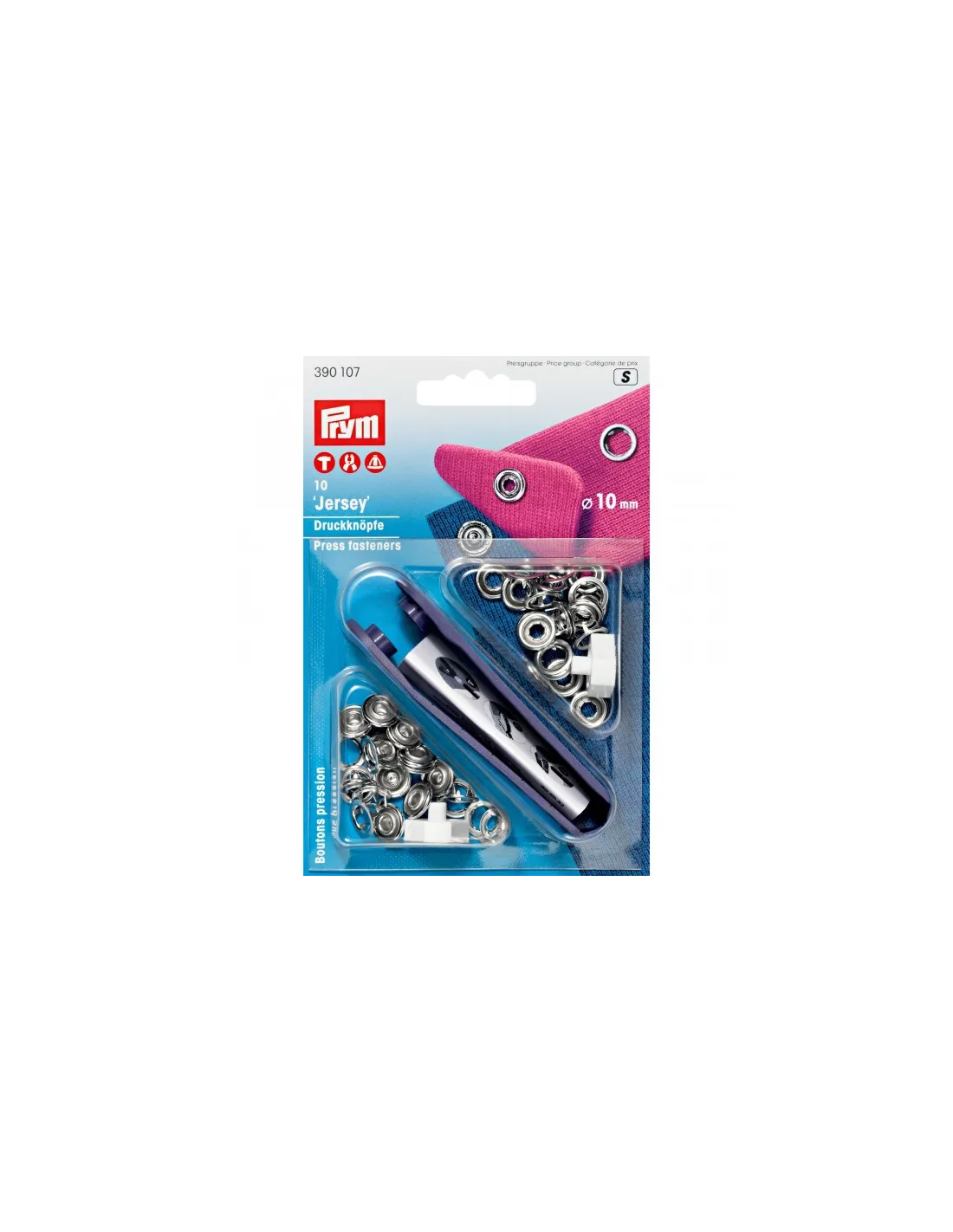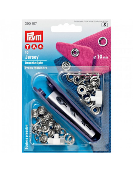 Les boutons pression « Jersey » de Prym sont caractérisés par leur force de fermeture souple à moyenne. Ils sont conçus spécialement pour les matériaux fins et élastiques tels que les vêtements bébé ou enfant. L’avantage de ce bouton pression est qu’il ne nécessite pas de percer un trou pour être posé : les boutons pression à griffes intégrés repoussent le tissu et permettent ainsi de ne pas l’abîmer. Le lavage, l’essorage, le nettoyage, le repassage à fer ou à rouleau ne posent aucun problème aux boutons pression inoxydables « Jersey » de chez Prym. Les boutons pression sont également disponibles en différents coloris et avec différents dessins. Les boutons pression de 18 mm ne peuvent être posés qu’avec l’outil fourni. Les boutons pression de 10 et 12 mm peuvent également être posés avec la pince VARIO à percer et à river ou le trépied Prym.