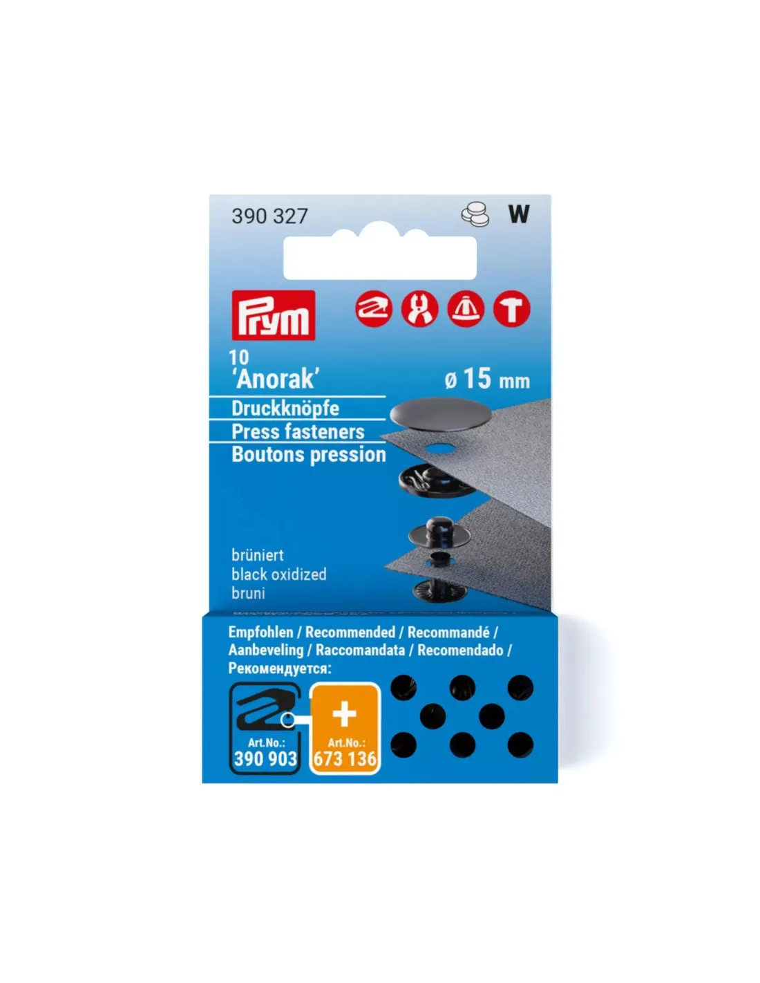 La force de fermeture moyenne des boutons pression sans couture « Anorak » fait d’eux des boutons parfaits pour les blousons, les anoraks, les robes, les jupes et les textiles de cuir fin. Leur particularité est d’avoir un fil à ressort en bronze (ressort « S ») garantissant une ouverture et une fermeture en douceur. Les boutons pression sont en laiton inoxydable et disponibles avec des revêtements aux couleurs variées telles que l’argent, l’or, le laiton antique, le cuivre antique, le fer antique ou le brun. La calotte laquée en blanc ou noir constitue une autre variante attrayante. Les outils et les instructions sont fournis dans le paquet : vous pouvez ainsi commencer immédiatement ! Les boutons pression Anorak peuvent aussi être posés avec la pince VARIO à percer et à river ou le trépied.