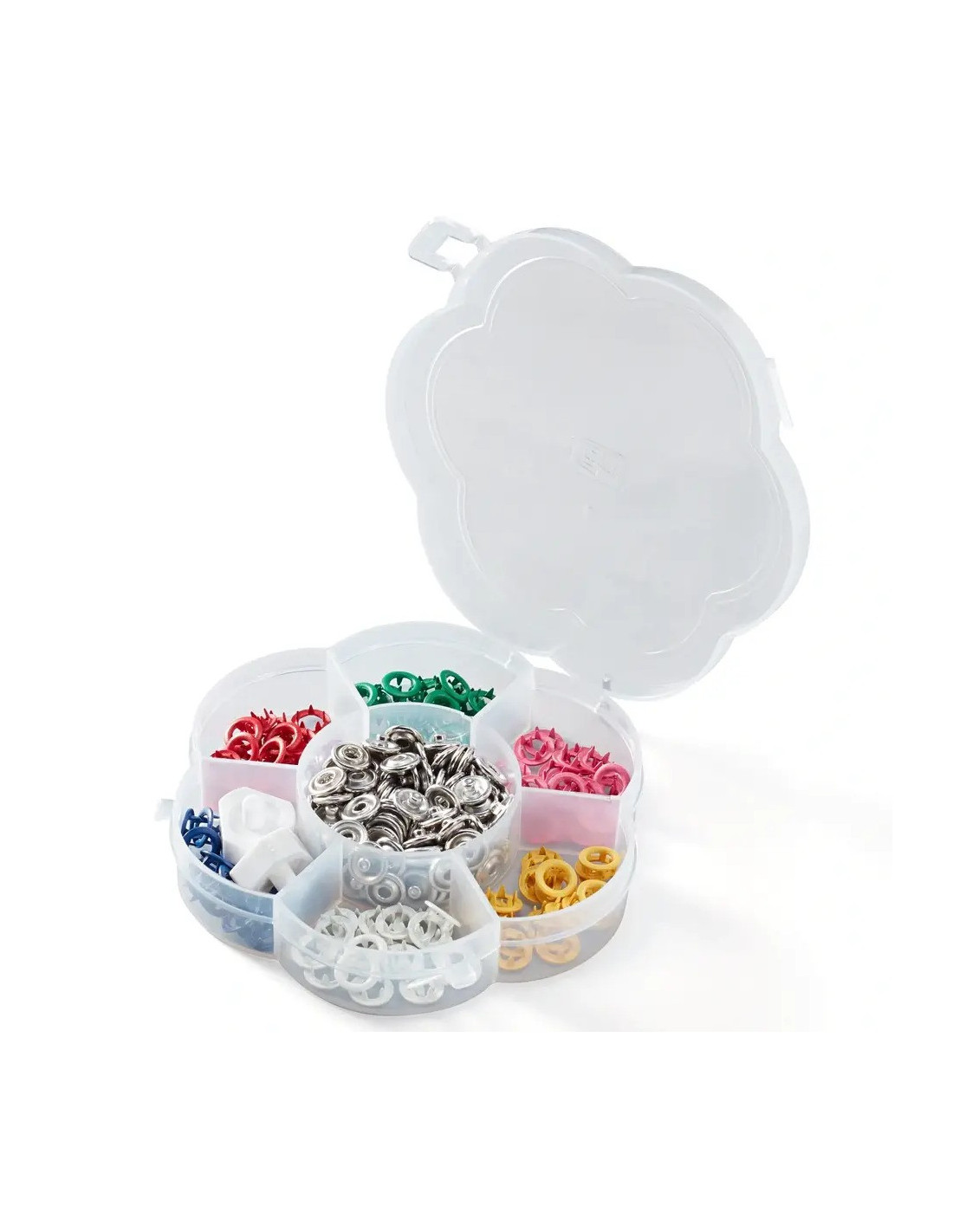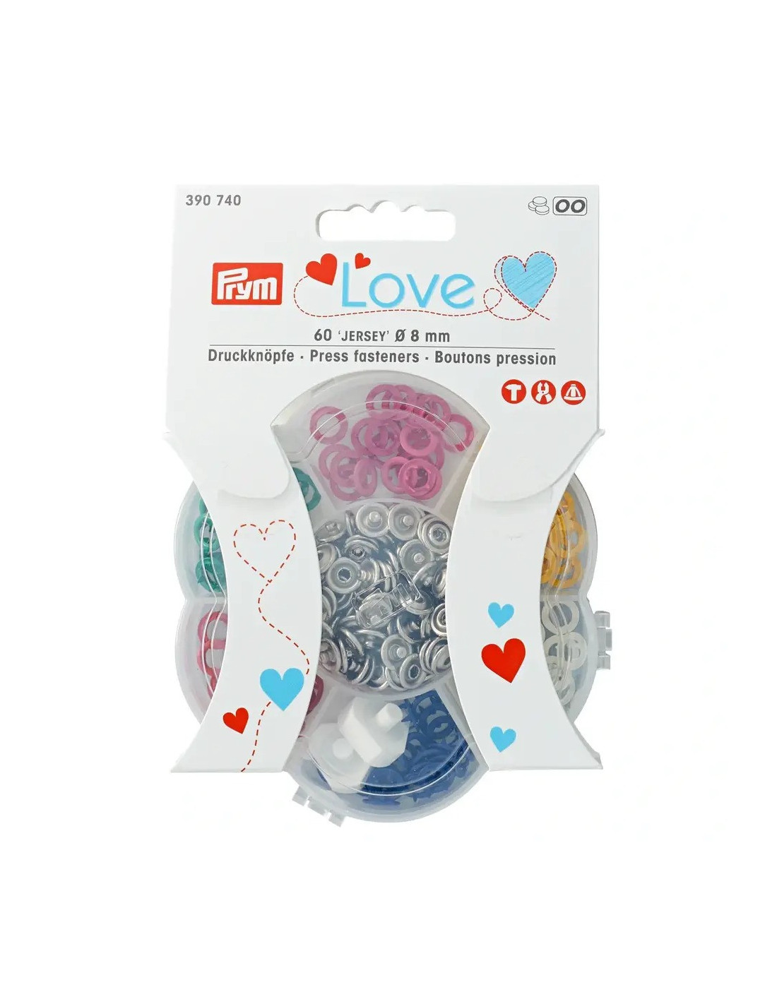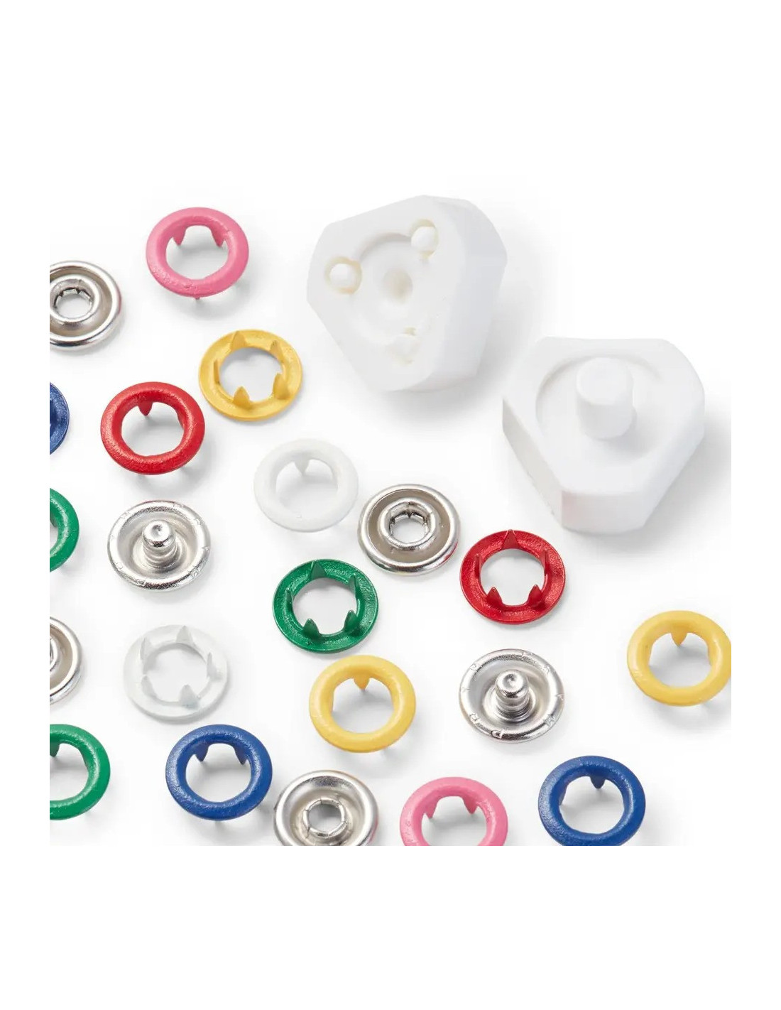 Les boutons pression « Jersey » de Prym sont caractérisés par leur force de fermeture souple à moyenne. Ils sont conçus spécialement pour les matériaux fins et élastiques tels que les vêtements bébé ou enfant. L’avantage de ce bouton pression est qu’il ne nécessite pas de percer un trou pour être posé : les boutons pression à griffes intégrés repoussent le tissu et permettent ainsi de ne pas l’abîmer. Le lavage, l’essorage, le nettoyage, le repassage à fer ou à rouleau ne posent aucun problème aux boutons pression inoxydables « Jersey » de chez Prym. Les boutons pression sont également disponibles en différents coloris et avec différents dessins. Les boutons pression de 18 mm ne peuvent être posés qu’avec l’outil fourni. Les boutons pression de 10 et 12 mm peuvent également être posés avec la pince VARIO à percer et à river ou le trépied Prym.
