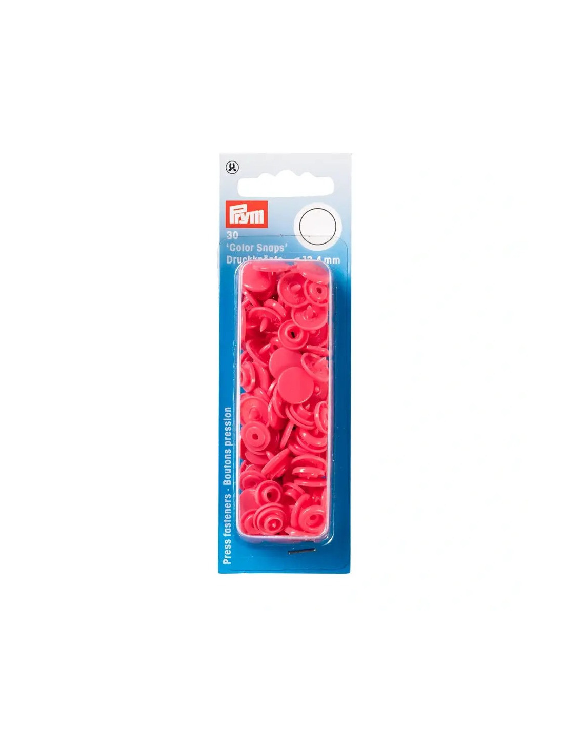 Les « Color Snaps » de la gamme « Prym Love » ont depuis longtemps acquis le statut d’incontournables. Ils sont conformes à la norme Oeko-Tex® Standard 100, classe 1 et sont volontiers utilisés pour les vêtements bébé et enfant du fait de leur force de fermeture souple. Il est également possible d’utiliser les boutons pression de couleur pour décorer très facilement blousons, vestes ou draps cousus à la main. Chaque lot contient un assortiment harmonieux de trois couleurs différentes assorties : il y a des assortiments pour absolument tous les goûts ! Les « Color Snaps » en plastique résistants sont lavables à 60 degrés. La pose des « Color Snaps » requiert l’utilisation de la pince VARIO à percer et à river de Prym ainsi que du jeu d’outil « Color Snaps ».