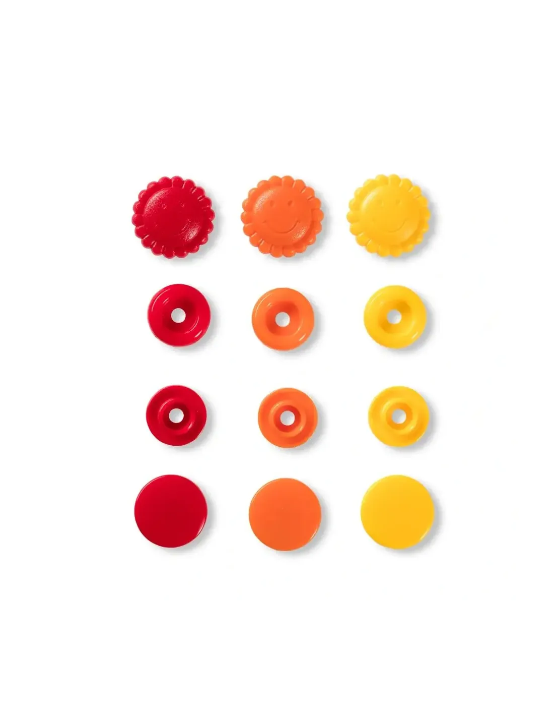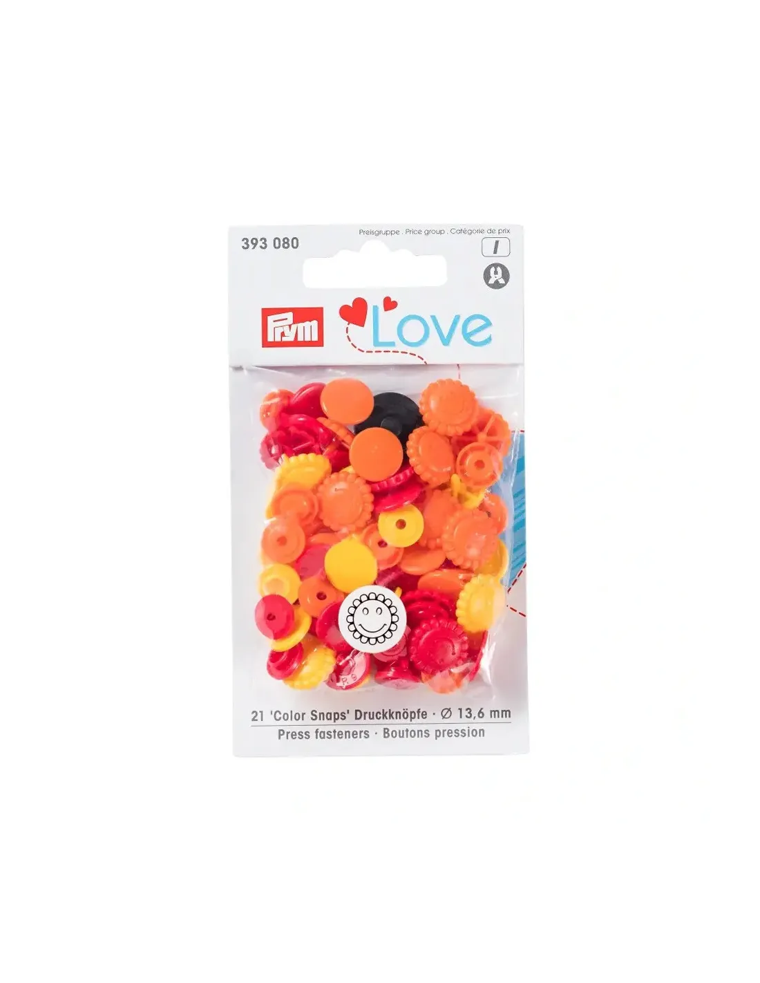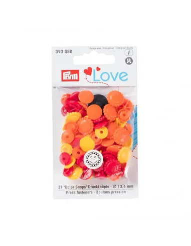Les « Color Snaps » de la gamme « Prym Love » ont depuis longtemps acquis le statut d’incontournables. Ils sont conformes à la norme Oeko-Tex® Standard 100, classe 1 et sont volontiers utilisés pour les vêtements bébé et enfant du fait de leur force de fermeture souple. Il est également possible d’utiliser les boutons pression de couleur pour décorer très facilement blousons, vestes ou draps cousus à la main. Chaque lot contient un assortiment harmonieux de trois couleurs différentes assorties : il y a des assortiments pour absolument tous les goûts ! Les « Color Snaps » en plastique résistants sont lavables à 60 degrés. La pose des « Color Snaps » requiert l’utilisation de la pince VARIO à percer et à river de Prym ainsi que du jeu d’outil « Color Snaps ».