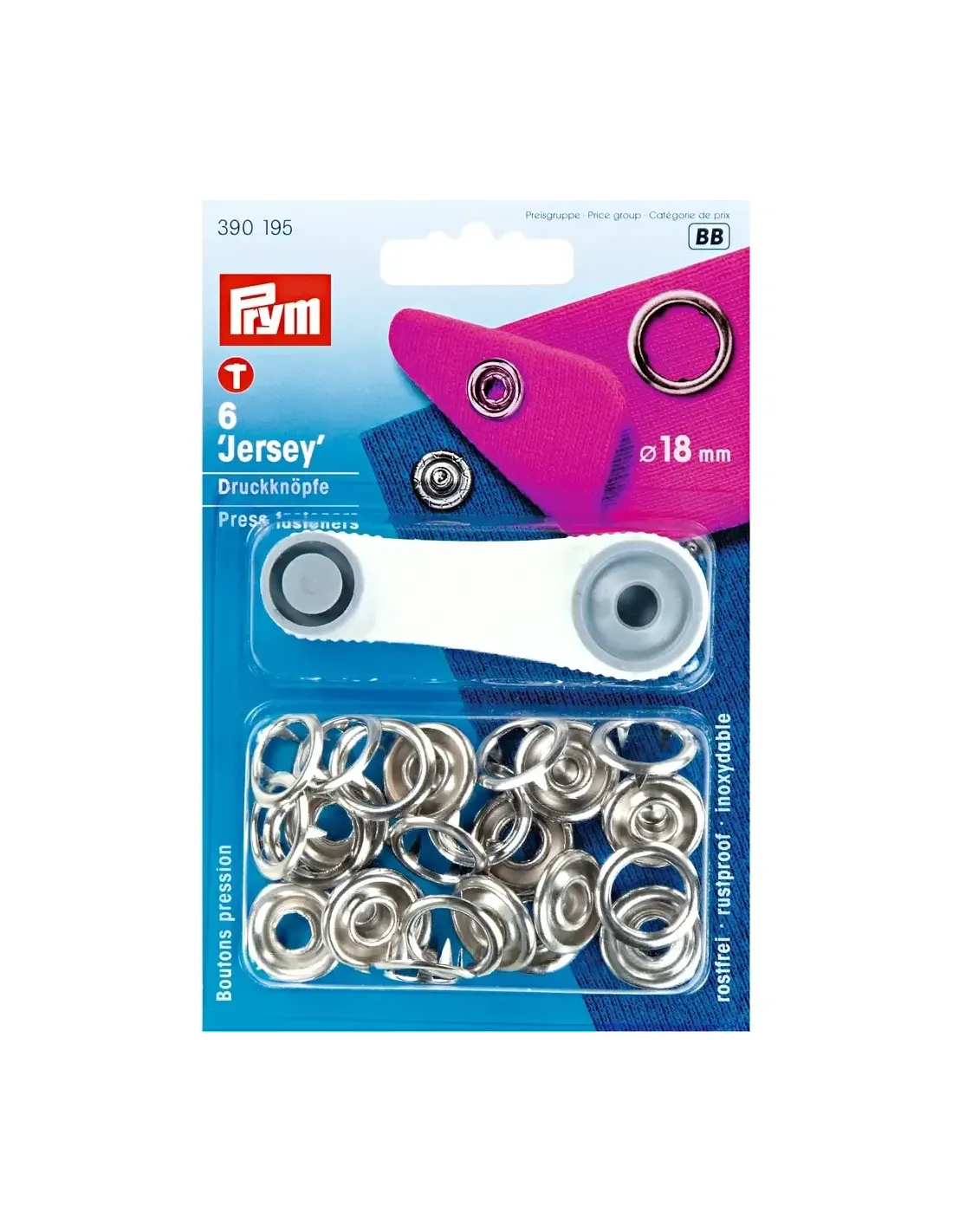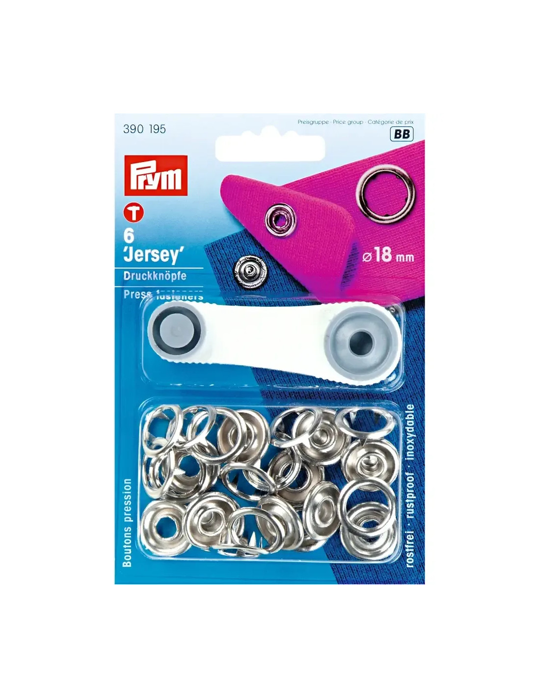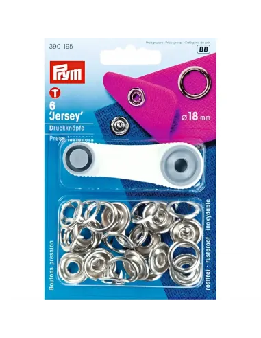 Les boutons pression « Jersey » de Prym sont caractérisés par leur force de fermeture souple à moyenne. Ils sont conçus spécialement pour les matériaux fins et élastiques tels que les vêtements bébé ou enfant. L’avantage de ce bouton pression est qu’il ne nécessite pas de percer un trou pour être posé : les boutons pression à griffes intégrés repoussent le tissu et permettent ainsi de ne pas l’abîmer. Le lavage, l’essorage, le nettoyage, le repassage à fer ou à rouleau ne posent aucun problème aux boutons pression inoxydables « Jersey » de chez Prym. Les boutons pression sont également disponibles en différents coloris et avec différents dessins. Les boutons pression de 18 mm ne peuvent être posés qu’avec l’outil fourni. Les boutons pression de 10 et 12 mm peuvent également être posés avec la pince VARIO à percer et à river ou le trépied Prym.
