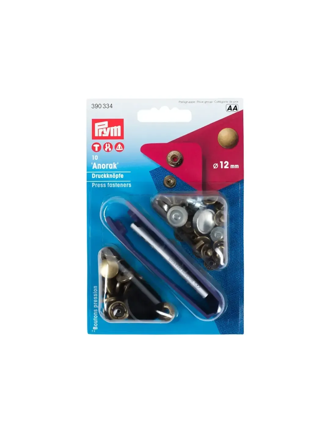 La force de fermeture moyenne des boutons pression sans couture « Anorak » fait d’eux des boutons parfaits pour les blousons, les anoraks, les robes, les jupes et les textiles de cuir fin. Leur particularité est d’avoir un fil à ressort en bronze (ressort « S ») garantissant une ouverture et une fermeture en douceur. Les boutons pression sont en laiton inoxydable et disponibles avec des revêtements aux couleurs variées telles que l’argent, l’or, le laiton antique, le cuivre antique, le fer antique ou le brun. La calotte laquée en blanc ou noir constitue une autre variante attrayante. Les outils et les instructions sont fournis dans le paquet : vous pouvez ainsi commencer immédiatement ! Les boutons pression Anorak peuvent aussi être posés avec la pince VARIO à percer et à river ou le trépied.