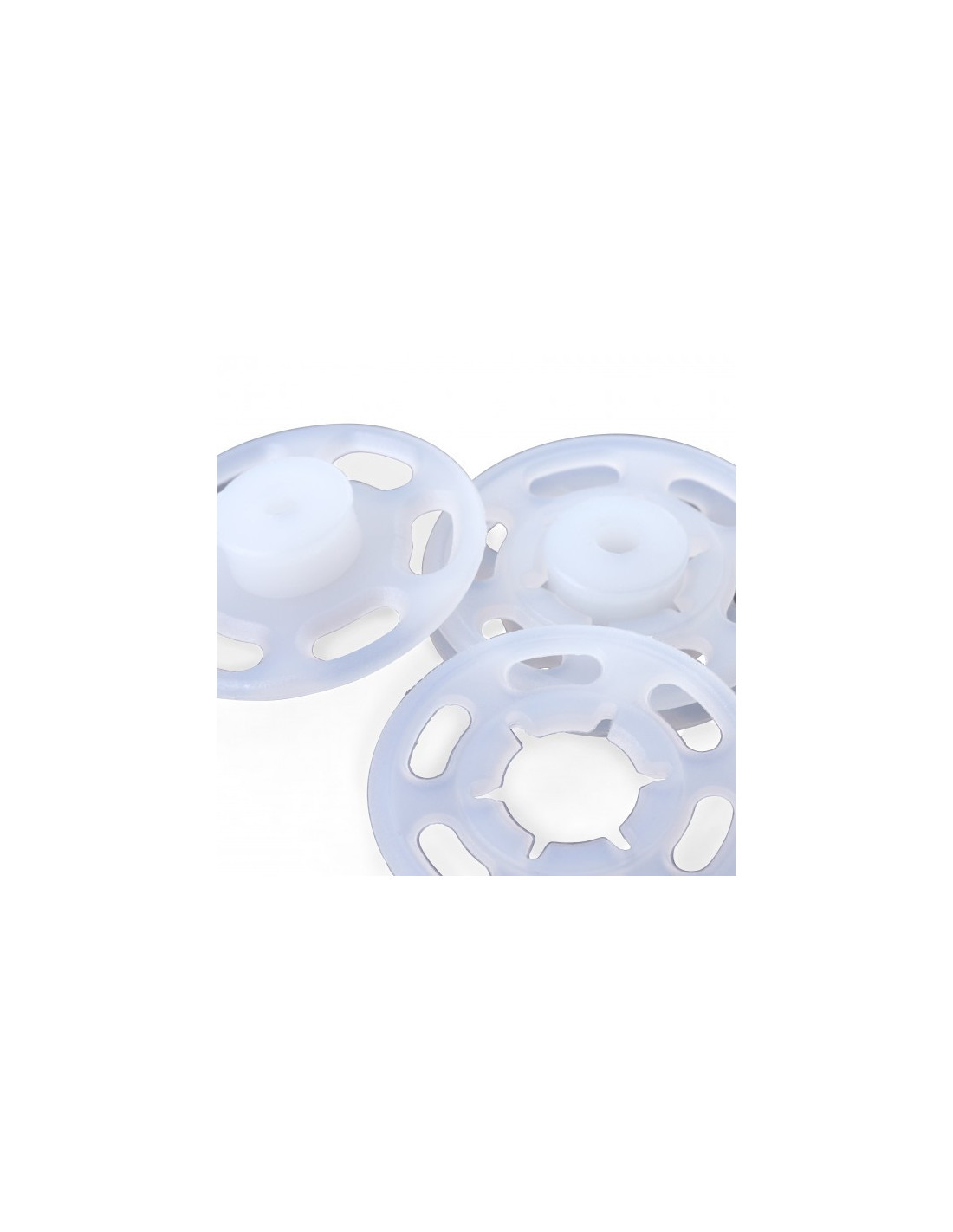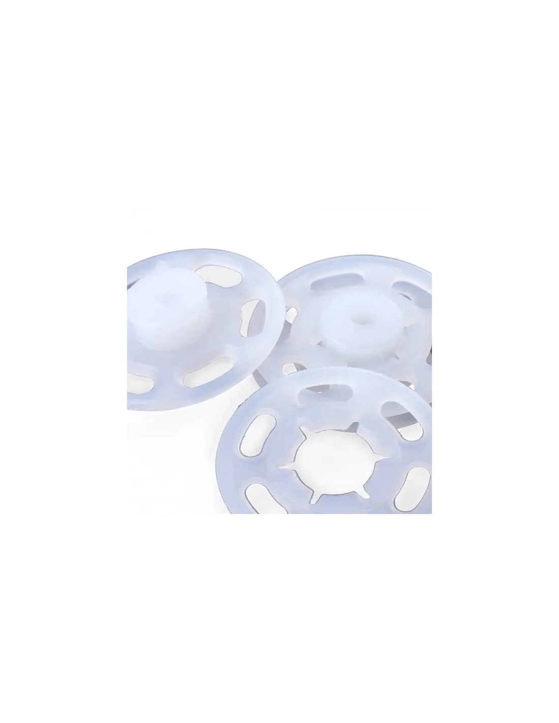 Ces boutons pression à coudre en plastique couvrent absolument tous les besoins, car ils conviennent notamment aux vêtements, mais ils peuvent aussi se révéler très utiles pour le ménage, pour le bricolage ou pour le camping. Ils sont en plastique haut de gamme résistant à la cassure et, par leur faible poids, particulièrement adaptés aux vêtements légers ou bien également aux vêtements pour bébés. Grâce à leur transparence ils constituent également la solution idéale pour, par exemple, les draps ou les oreillers ou pour tous les endroits où les boutons pressions doivent rester invisibles. Les quatre encoches situées sur chacun des boutons pression permettent de les coudre solidement. Ils sont lavables jusqu’à 95 degrés et disponibles en plusieurs tailles. Le nombre des boutons pression à coudre en plastique par paquet varie en fonction de la taille.