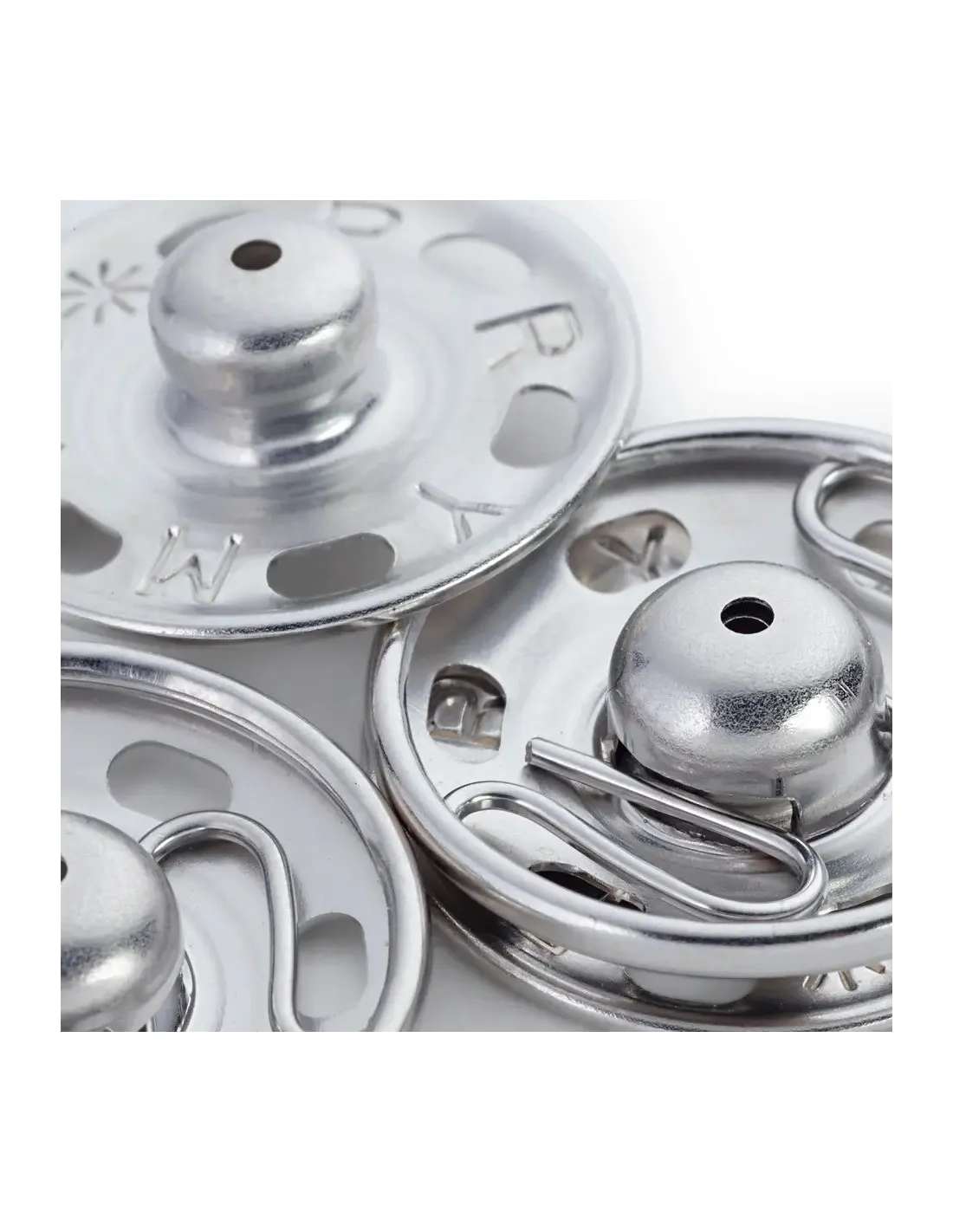 Ces boutons pression à coudre ronds en laiton inoxydable couvrent absolument tous les besoins, car ils servent en tant qu’élément décoratif polyvalent pour les vêtements du quotidien ou pour la décoration d’accessoires. Les boutons pression à coudre sont composés d’une partie ressort et d’une partie boule. La partie inférieure (la partie boule) est rabattue, ce qui permet de protéger le tissu des bords tranchants et de le préserver. La fermeture est facile à manipuler et également facile à poser. Quatre encoches permettent de coudre le bouton pression de façon équilibrée. Les boutons pression à coudre sont disponibles en coloris argenté, noir ou doré.