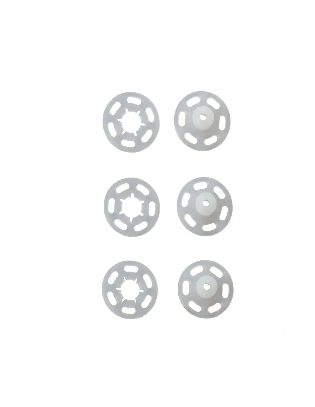 Ces boutons pression à coudre en plastique couvrent absolument tous les besoins, car ils conviennent notamment aux vêtements, mais ils peuvent aussi se révéler très utiles pour le ménage, pour le bricolage ou pour le camping. Ils sont en plastique haut de gamme résistant à la cassure et, par leur faible poids, particulièrement adaptés aux vêtements légers ou bien également aux vêtements pour bébés. Grâce à leur transparence ils constituent également la solution idéale pour, par exemple, les draps ou les oreillers ou pour tous les endroits où les boutons pressions doivent rester invisibles. Les quatre encoches situées sur chacun des boutons pression permettent de les coudre solidement. Ils sont lavables jusqu’à 95 degrés et disponibles en plusieurs tailles. Le nombre des boutons pression à coudre en plastique par paquet varie en fonction de la taille.