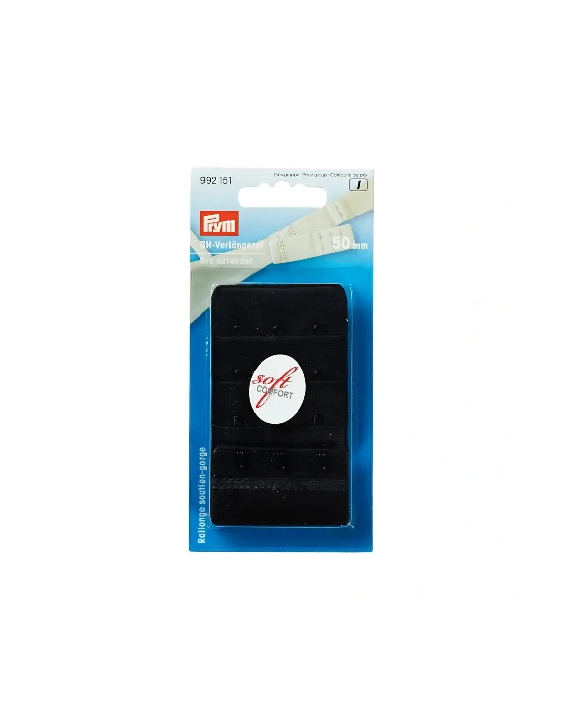 Les rallonges attache de soutien-gorge en polyamide et élasthanne avec trois possibilités de réglage conviennent pour agrandir le tour de thorax sur les soutien-gorge. Elles sont simplement accrochées entre les deux extrémités du soutien-gorge. Grâce au ruban élastique traité davantage et au traitement sans couture, les soutien-gorge préférés qui sont devenus serrés peuvent être portés de nouveau en tout confort. Les rallonges attache de soutien-gorge en 5 largeurs différentes entre 20 mm et 75 mm avec jusqu’à 4 crochets par rangée en 4 couleurs différentes sont disponibles dans la gamme de Prym. Elles ont été testées à la tolérance cutanée et sont lavables jusqu'à 40 degrés.