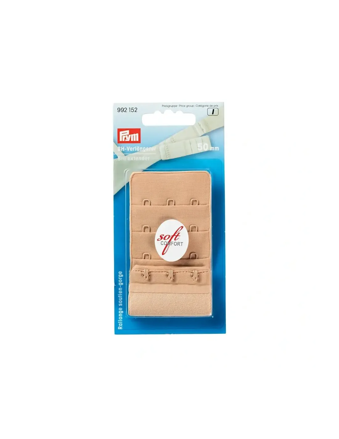 Les rallonges attache de soutien-gorge en polyamide et élasthanne avec trois possibilités de réglage conviennent pour agrandir le tour de thorax sur les soutien-gorge. Elles sont simplement accrochées entre les deux extrémités du soutien-gorge. Grâce au ruban élastique traité davantage et au traitement sans couture, les soutien-gorge préférés qui sont devenus serrés peuvent être portés de nouveau en tout confort. Les rallonges attache de soutien-gorge en 5 largeurs différentes entre 20 mm et 75 mm avec jusqu’à 4 crochets par rangée en 4 couleurs différentes sont disponibles dans la gamme de Prym. Elles ont été testées à la tolérance cutanée et sont lavables jusqu'à 40 degrés.