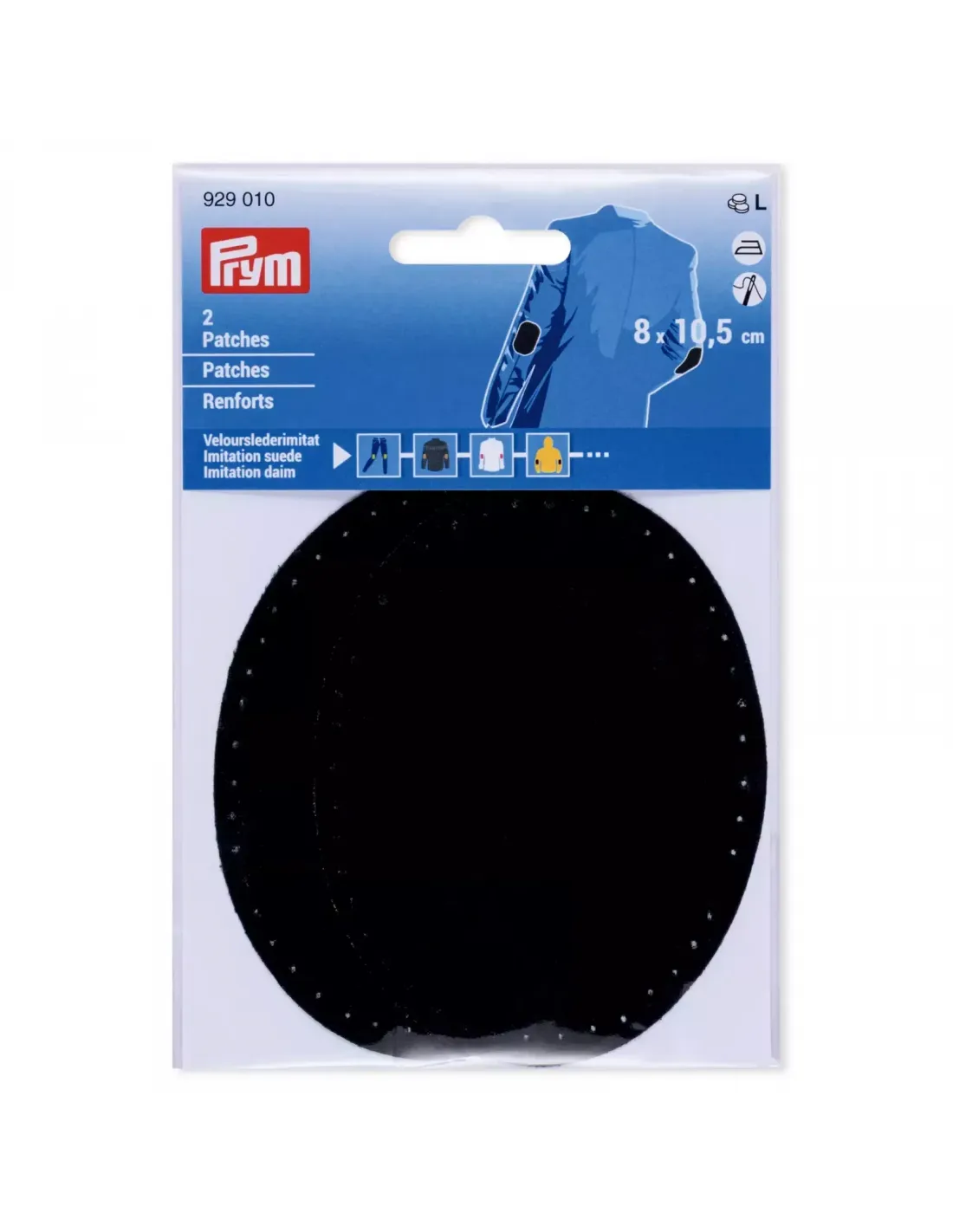 Les renforts ovales en imitation daim élégant à repasser et à coudre sont fixés pour couvrir les parties usées sur les coudes ou les genoux et comme motifs décoratifs à la mode sur les vêtements de dessus légers et moyens. Ainsi, ils servent en même temps de protection pour les parties des coudes fortement sollicitées. Grâce à leur revêtement adhésif de haute qualité, les renforts peuvent être très bien fixés à l'avance sur le tissu et le cuir. Le bord de trou pré-perforé permet des possibilités de couture créatives comme le point de croix, le fil de bâti et bien plus encore. La gamme de Prym les offre par 2 pièces dans une large gamme de couleurs et en deux tailles. Les renforts sont lavables jusqu'à 30 degrés.
