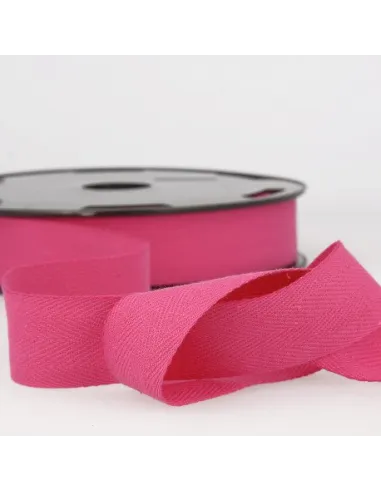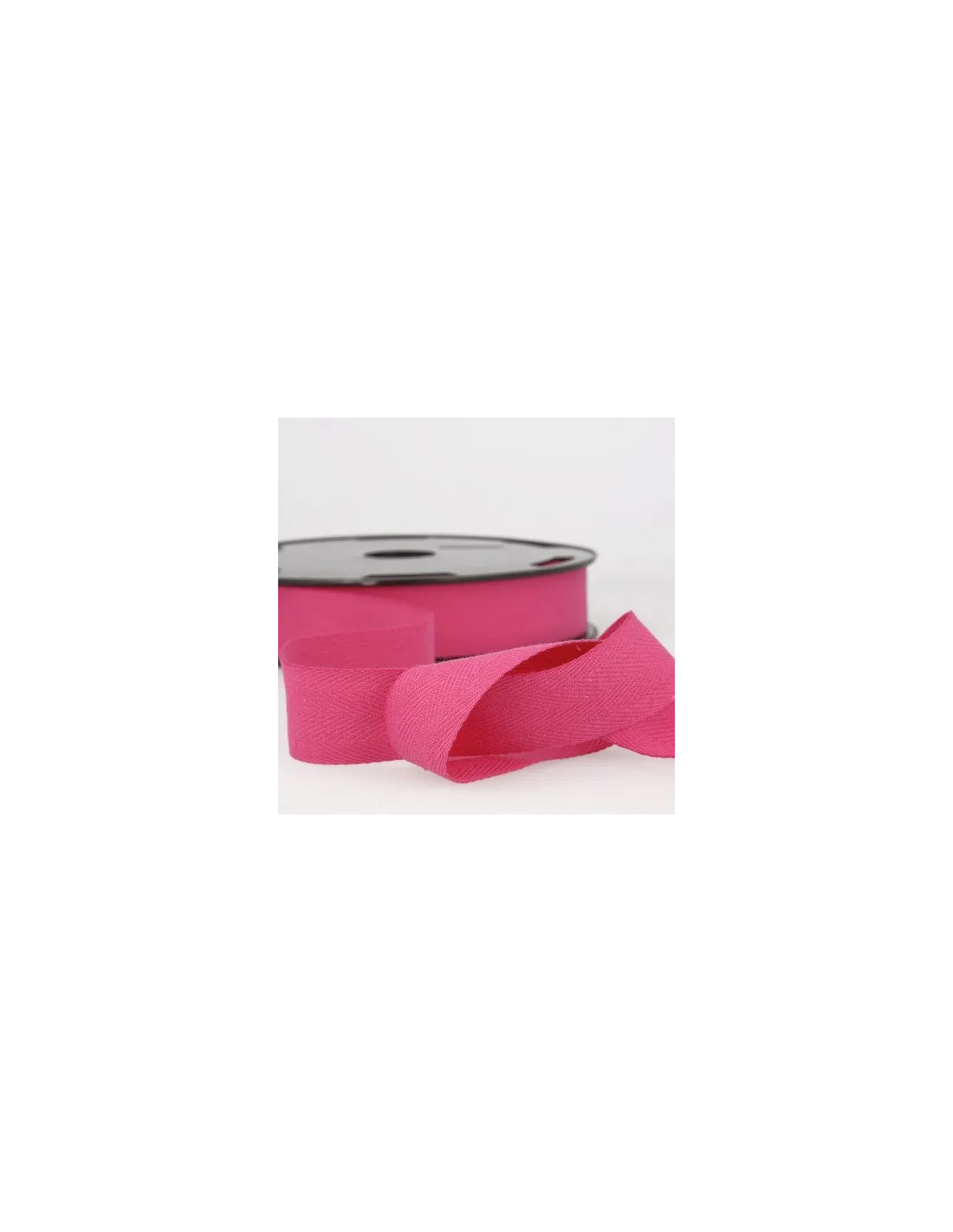 Ruban sergé de coton uni rose fuchsia, qualité supérieure.