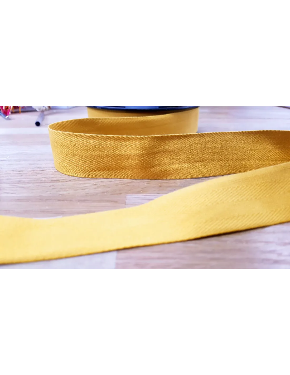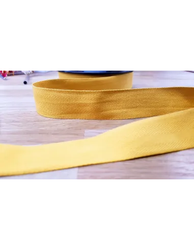 Ruban sergé de coton uni jaune moutarde, qualité supérieure.