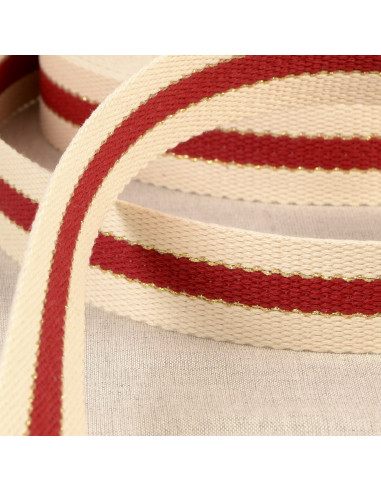 Sangle 3 bandes et lurex, 30mm, bordeaux