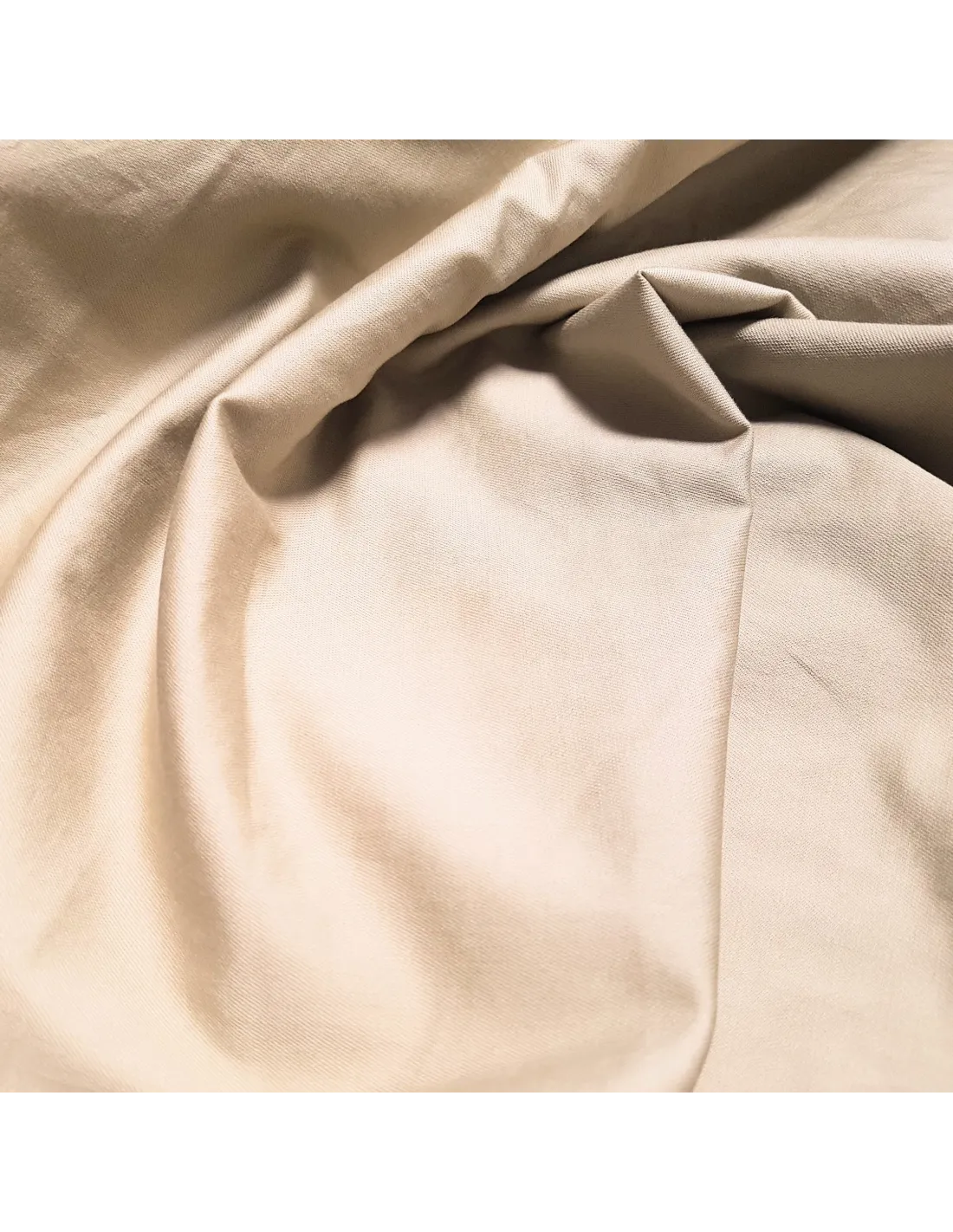 Satin de coton uni avec élasthanne. Son tissage particulier offre à ce tissu un aspect légèrement brillant. Très confortable et doux, il peut être utilisé pour l'habillement.
