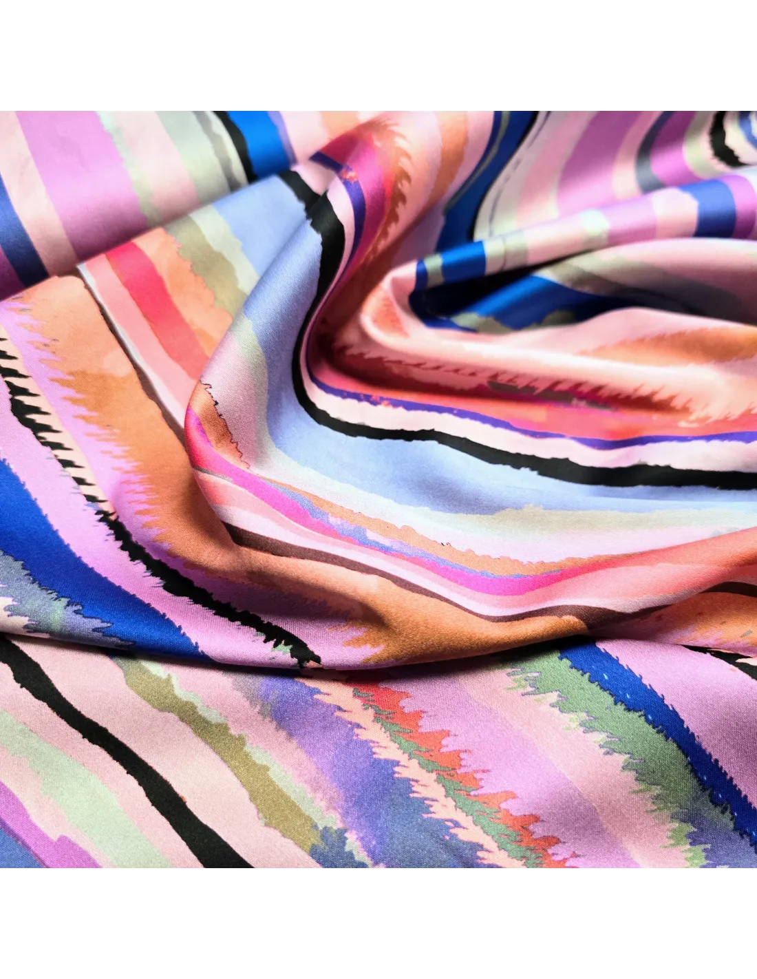 Satin de coton imprimé. Son tissage particulier offre à cette étoffe un aspect brillant. Très confortable et doux, il peut être utilisé pour l'habillement ou pour la literie.