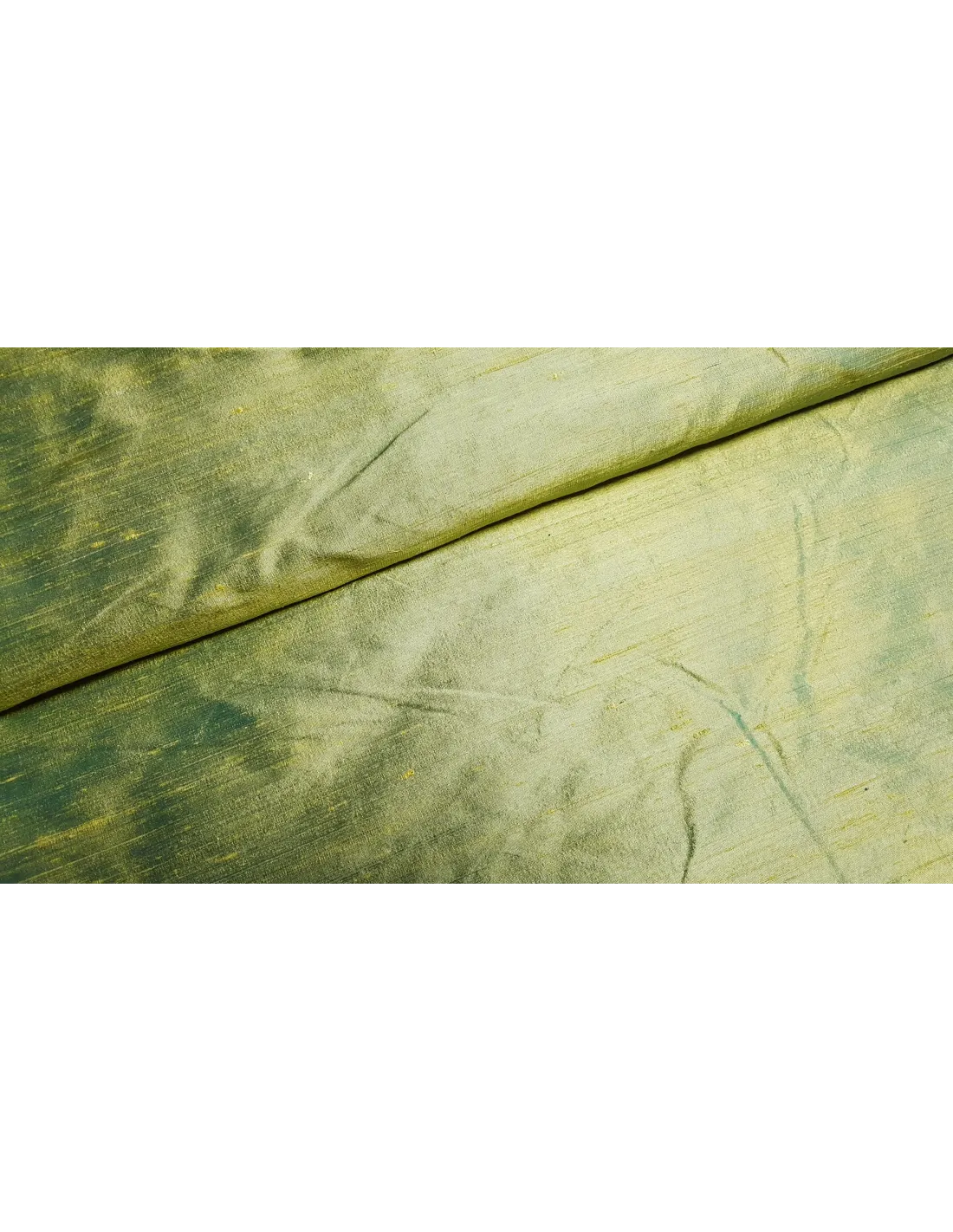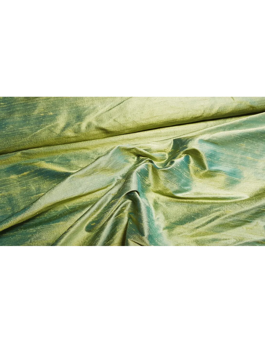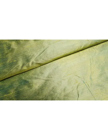 Beau tissu doupion de soie vert à couleur changeante. Idéal pour la confection de tenues de soirée ou encore de textile d’intérieur.