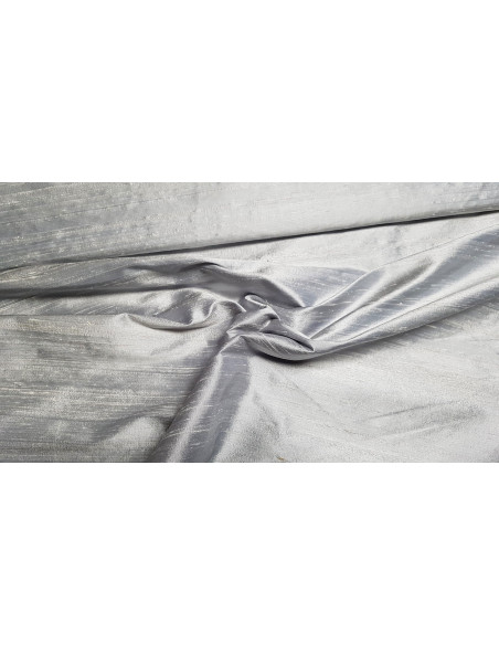 Beau tissu doupion de soie argenté à couleur changeante. Idéal pour la confection de tenues de soirée ou encore de textile d’intérieur.
