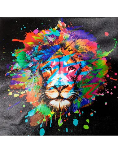 Panneau carré simili cuir, le lion multico