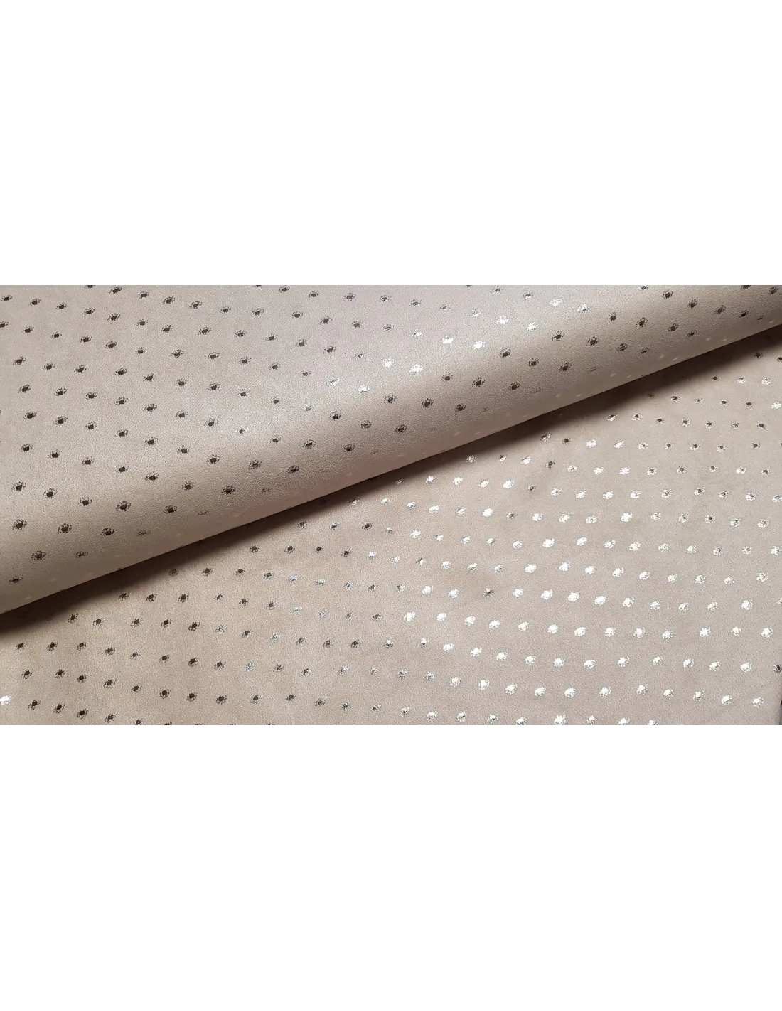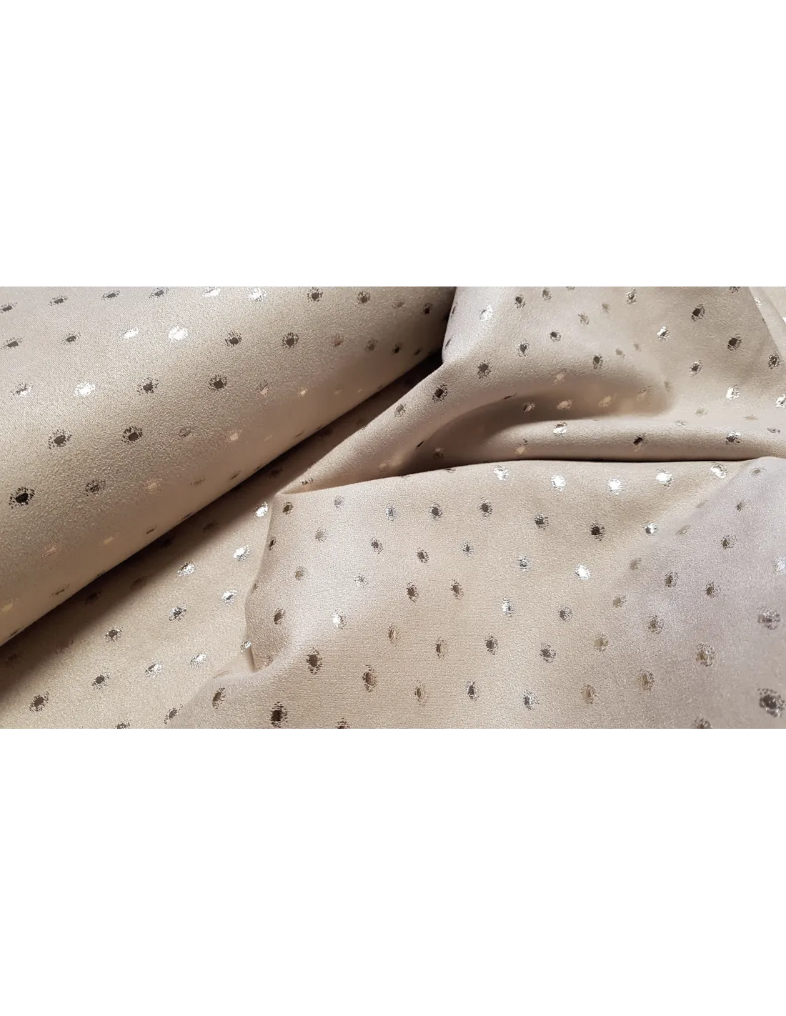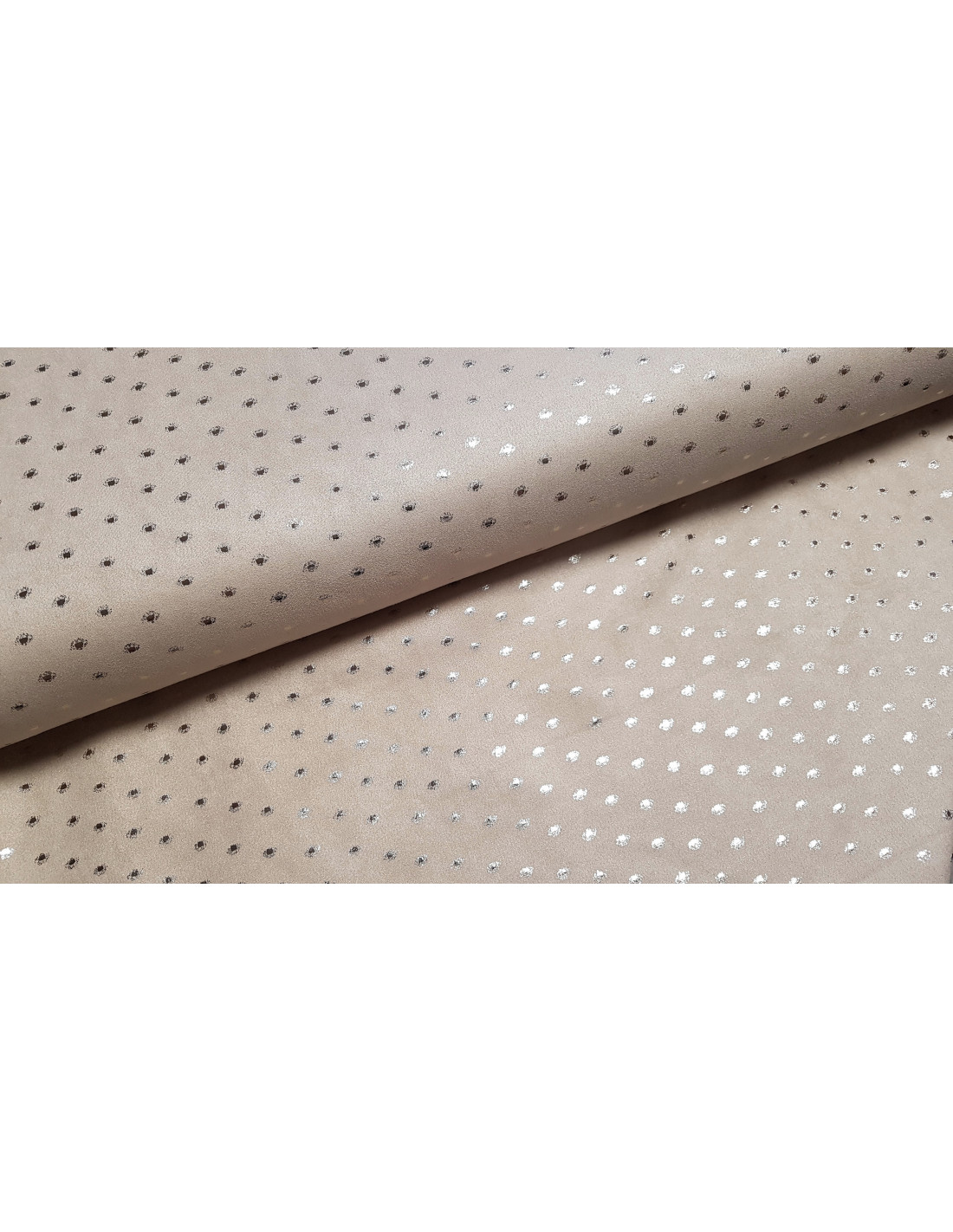 Belle suédine stretch à imprimés pois brillants sur fond rose pâle.