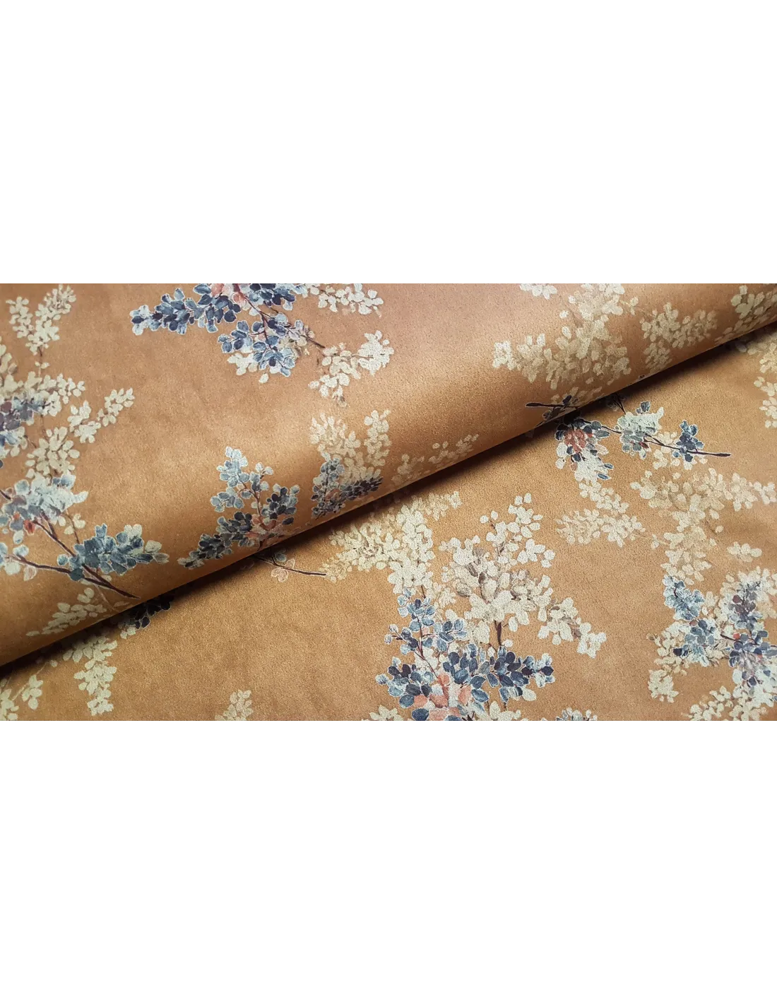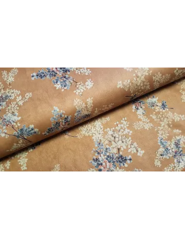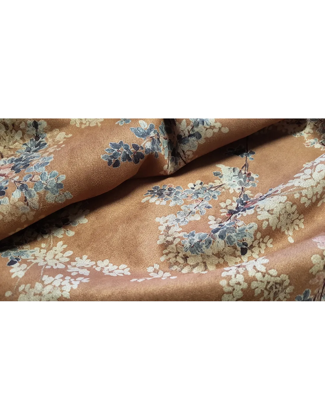 Belle suédine stretch avec un feuillage élégant sur fond chamois.