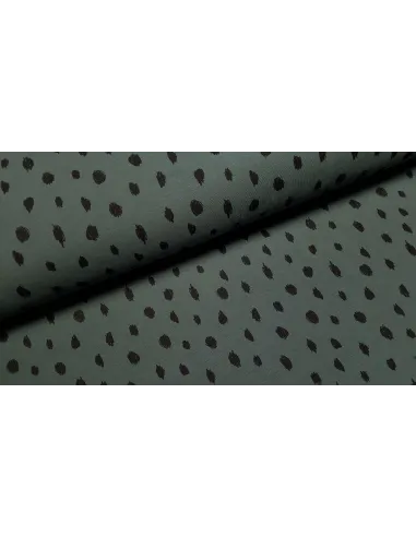 French Terry aux points peints sur fond vert kaki. Ce tissu jersey épais ou sweat léger est idéal pour la confection de t-shirt, sweat, jogging...