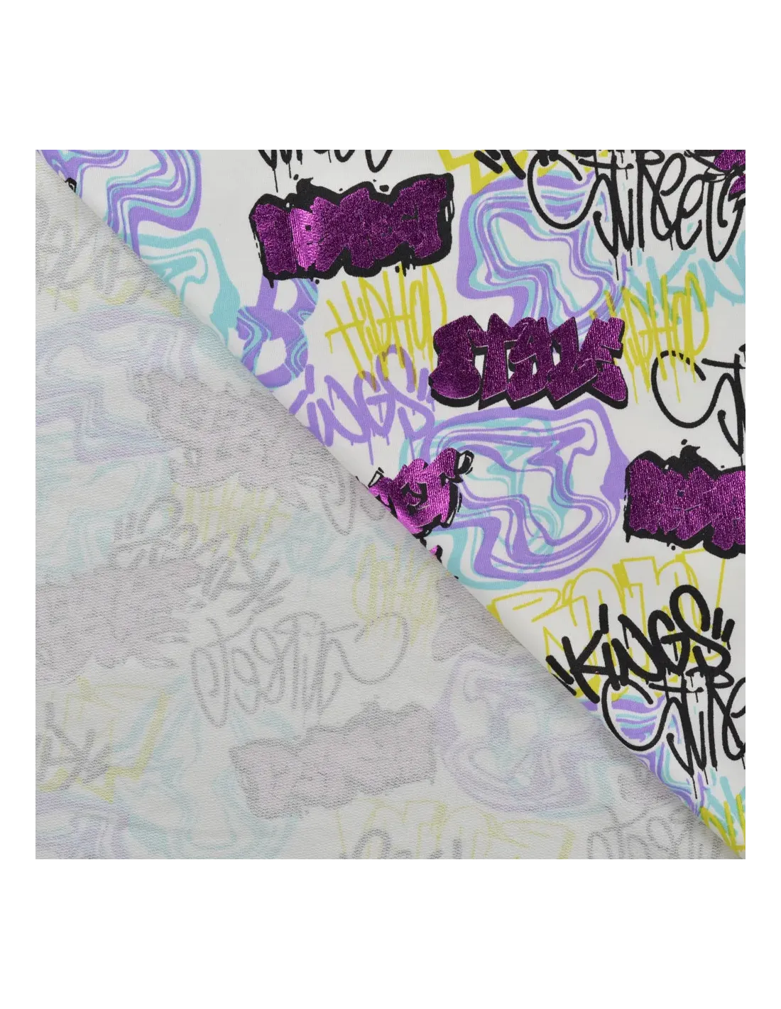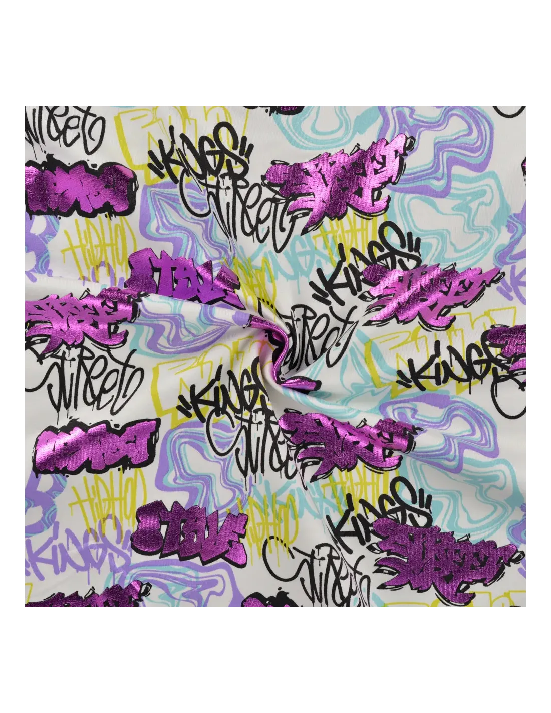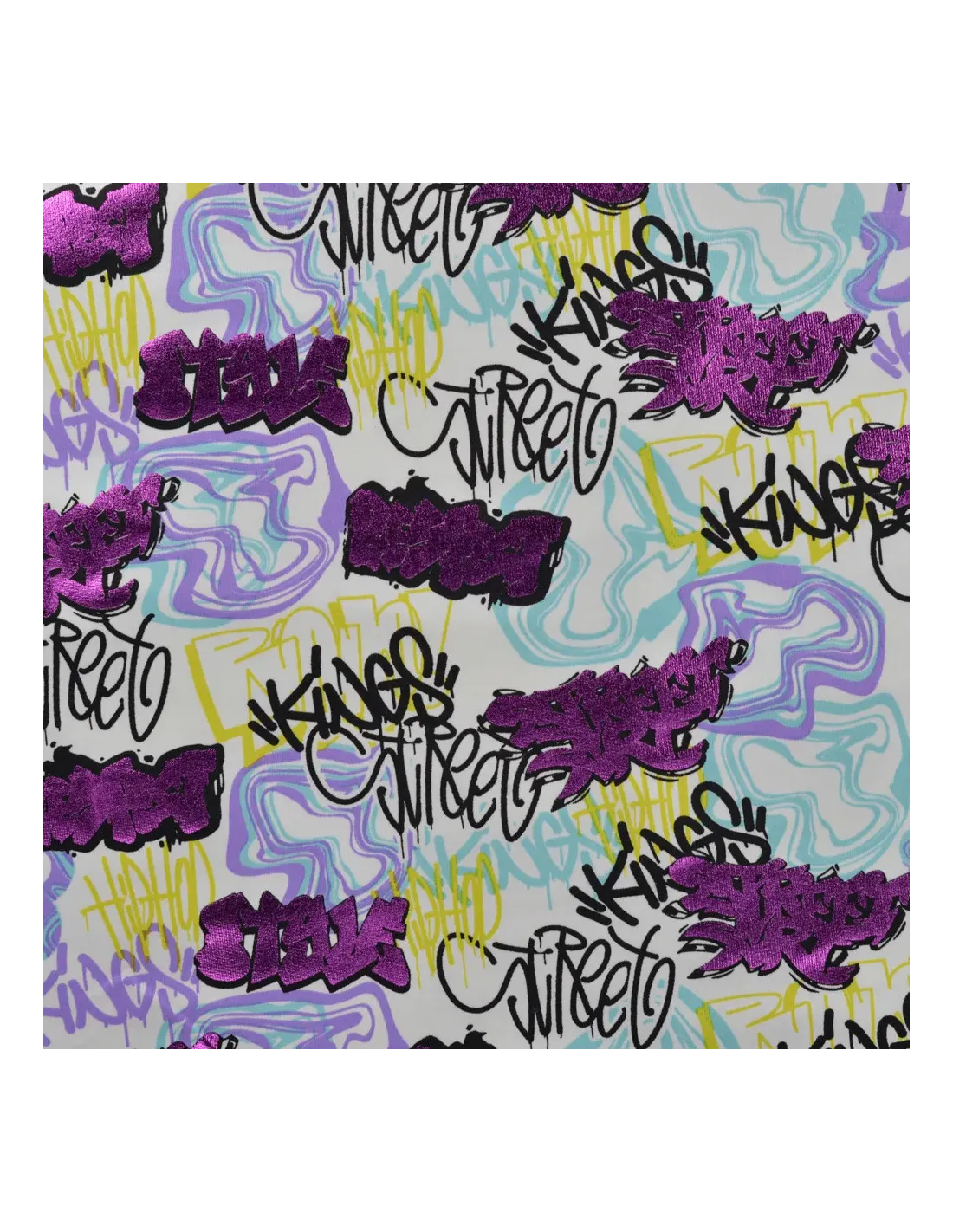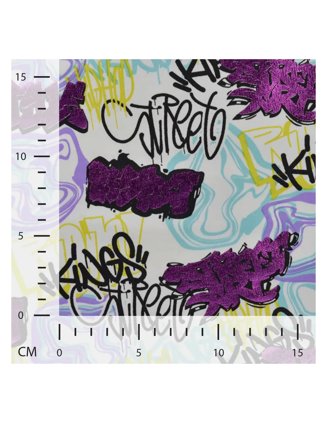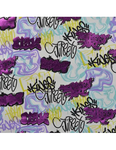 Découvrez notre tissu French Terry en coton, une invitation à l'expression artistique et au confort ! Avec ses motifs graffiti audacieux et colorés, ce tissu capte l'énergie vibrante du street art urbain.