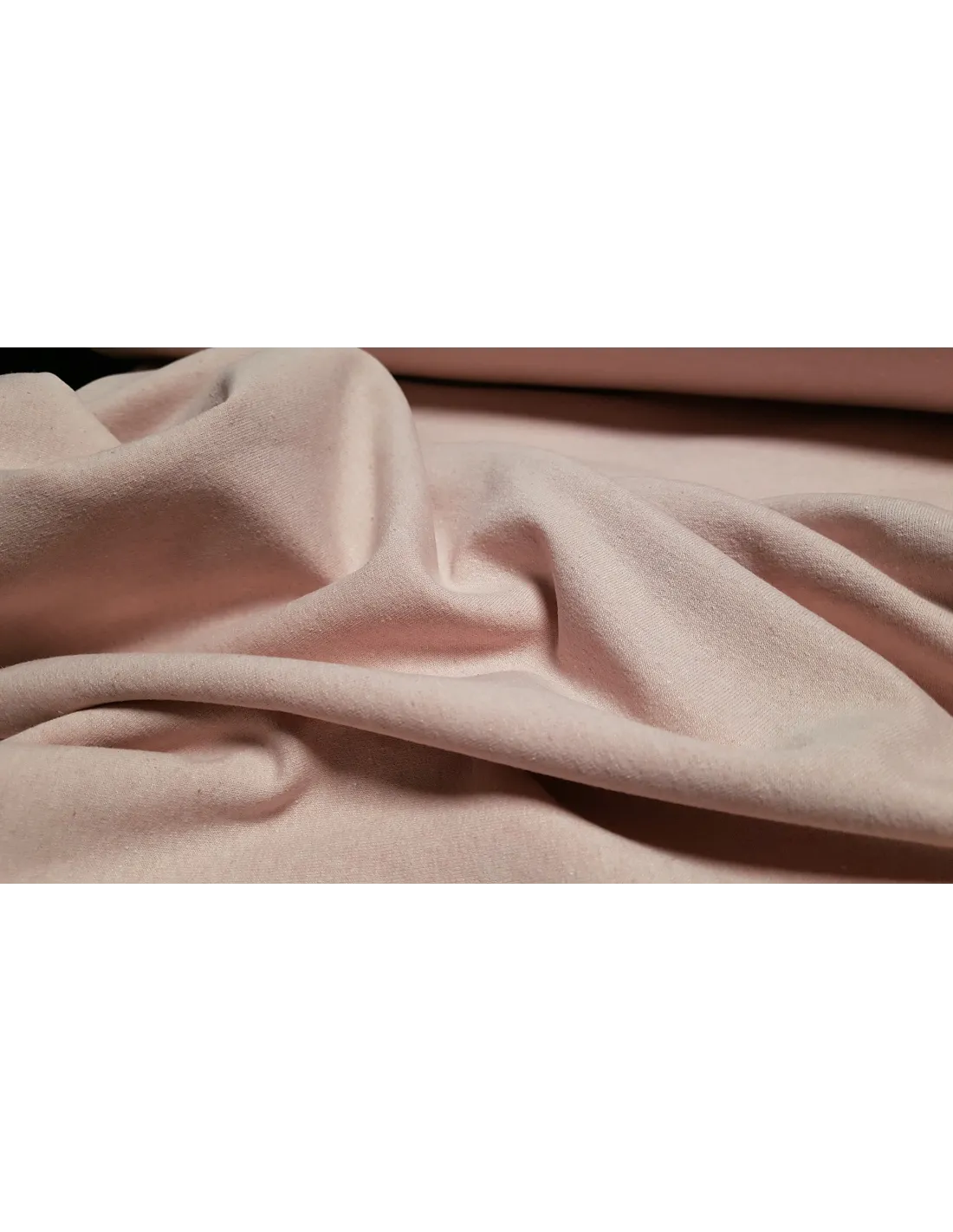 Joli tissu sweat uni rose clair légèrement chiné. Souple et pas trop épais, il sera idéal pour la confection de sweats, pantalons...