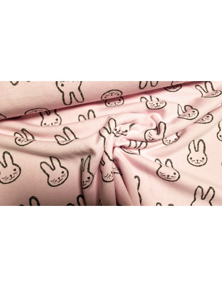 Sweat épais tout doux à imprimés lapins sur fond rose et a envers en polaire doudou.