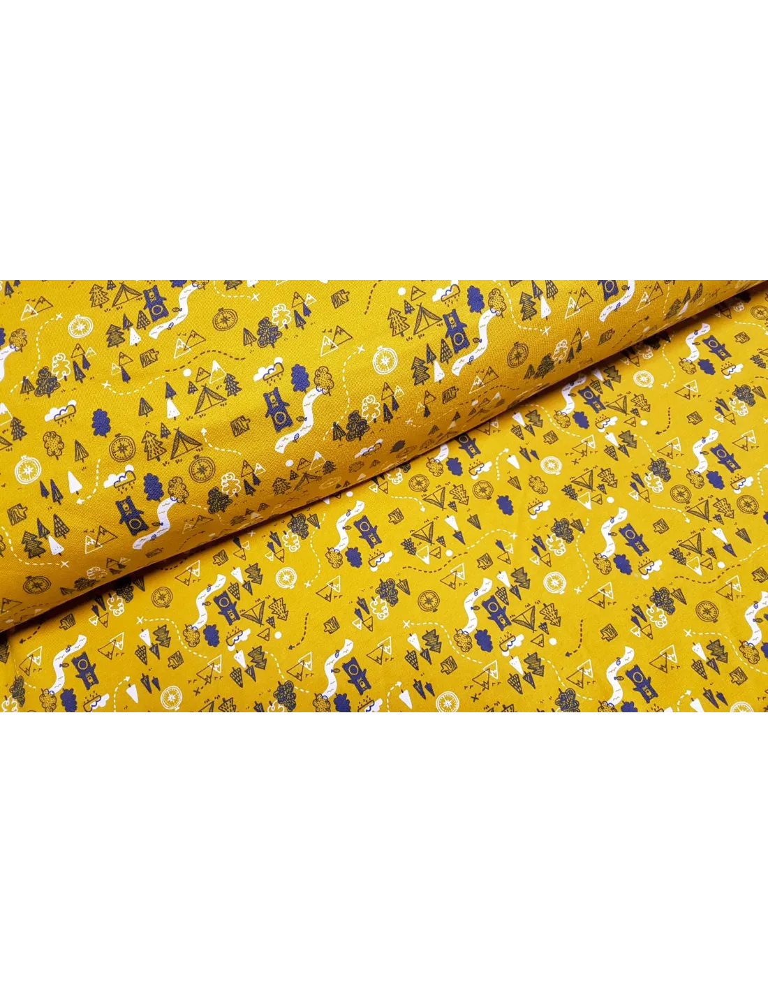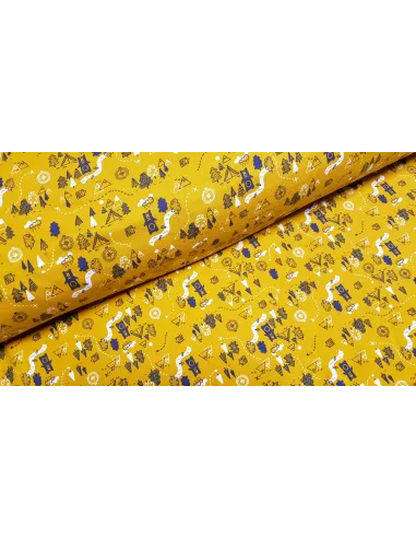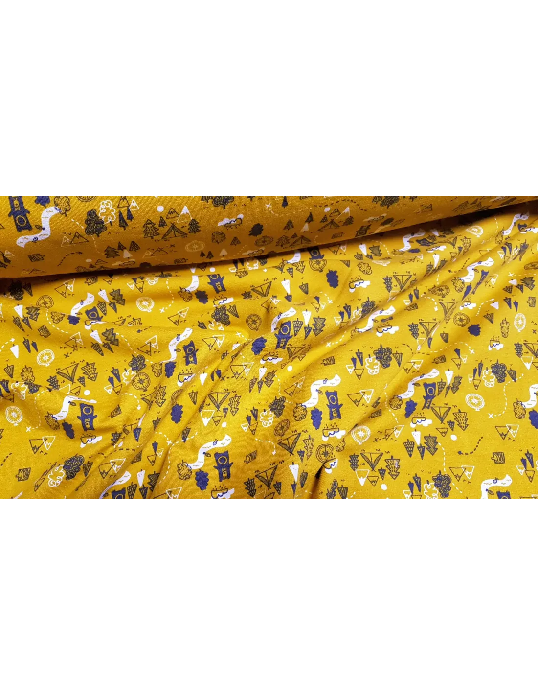 Sweat épais bio tout doux à imprimés ours sur fond jaune moutarde et a envers gratté.