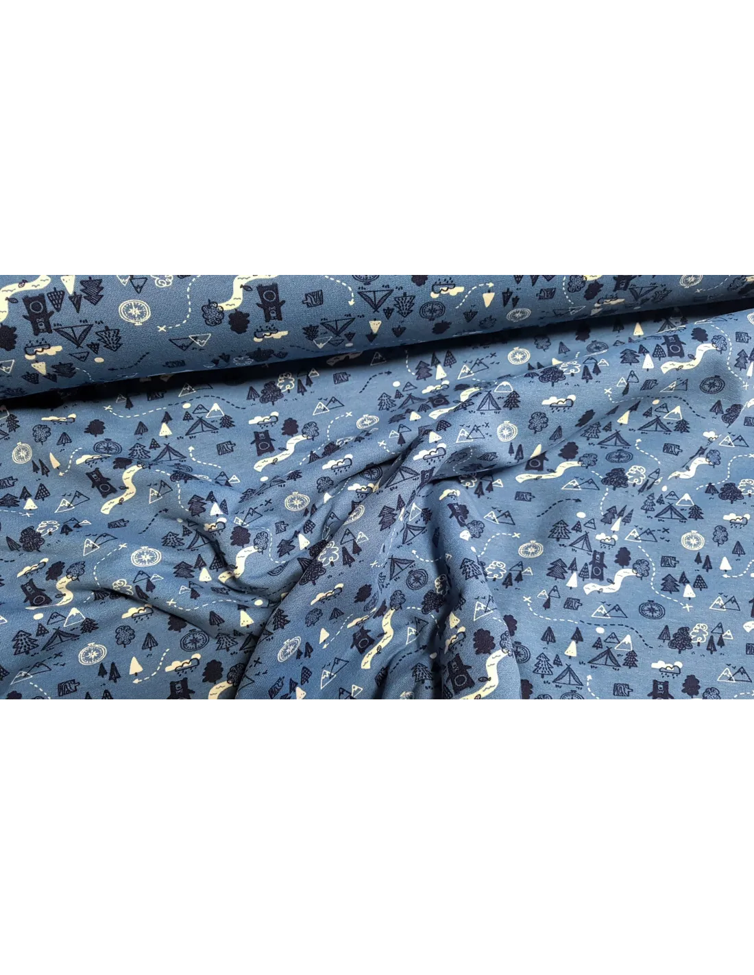 Sweat épais bio tout doux à imprimés ours sur fond bleu jeans et a envers gratté.