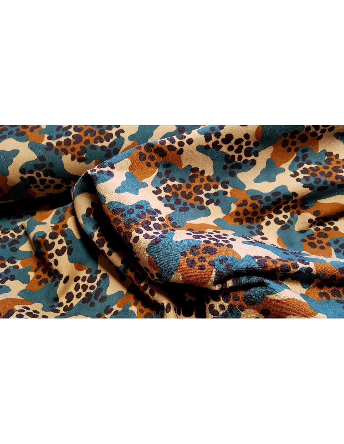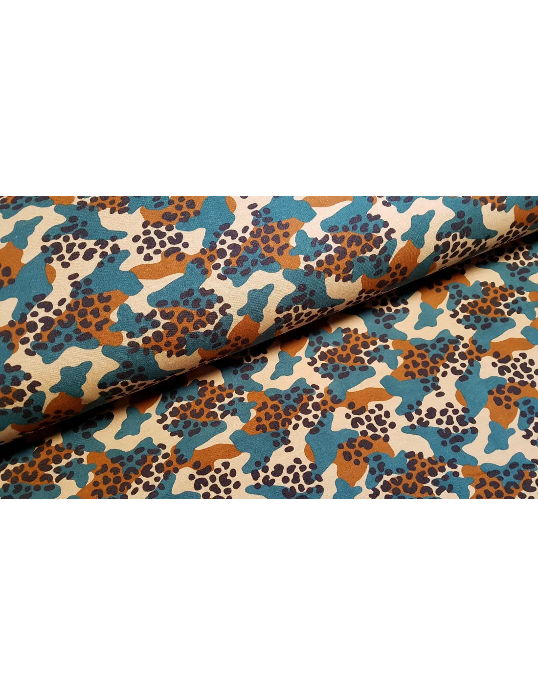 Magnifique sweat doublé en polaire, à l'impression animaux de la forêt sur fond bleu pétrole. Ce tissu chaud est idéal pour la confection de t-shirt, sweat, jogging…