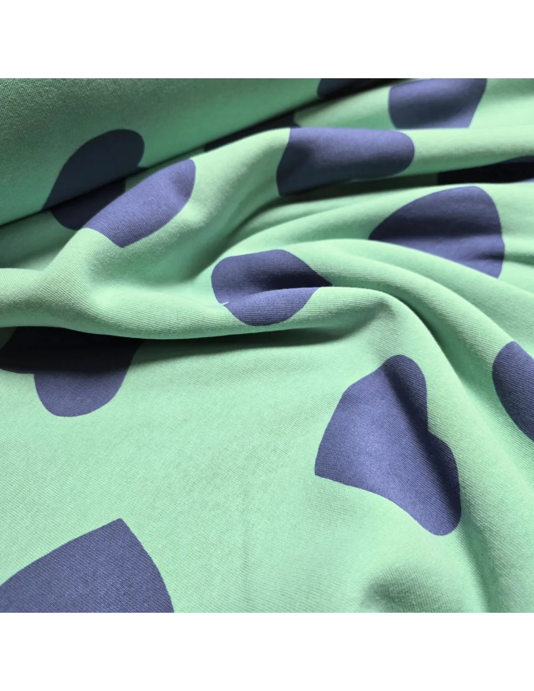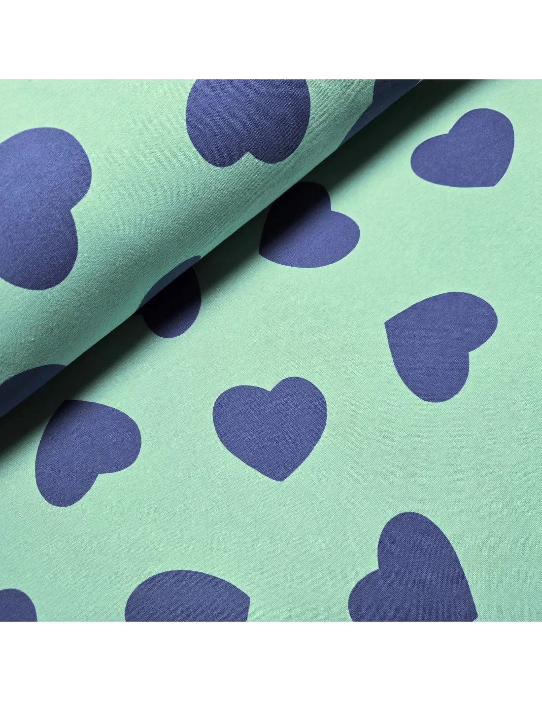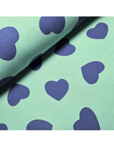 Sweat imprimé coeurs sur fond vert clair. Parfait pour vous confectionner sweat, snood, robe...